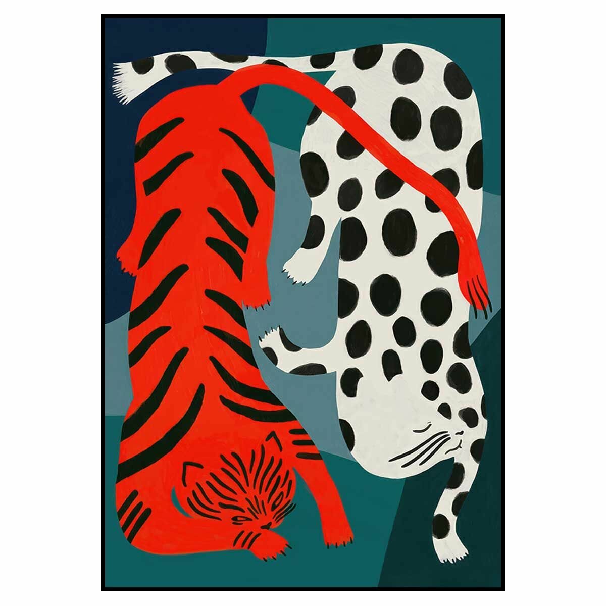 Постер "Красный тигр и белый леопард" 60x90 без рамки на стену для интерьера информация:
