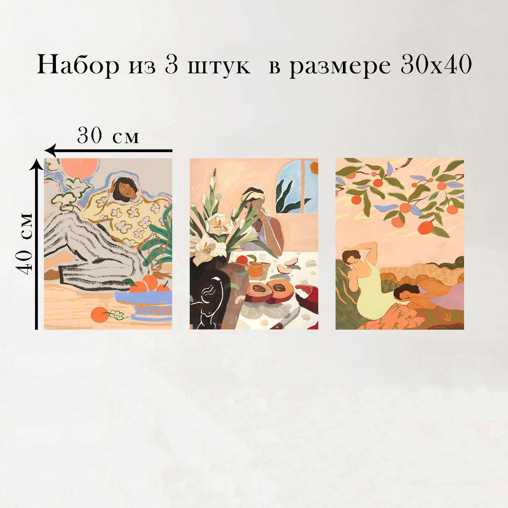 Набор интерьерных постеров "Ленивый день" 30х40 см 3 шт без рам информация:
