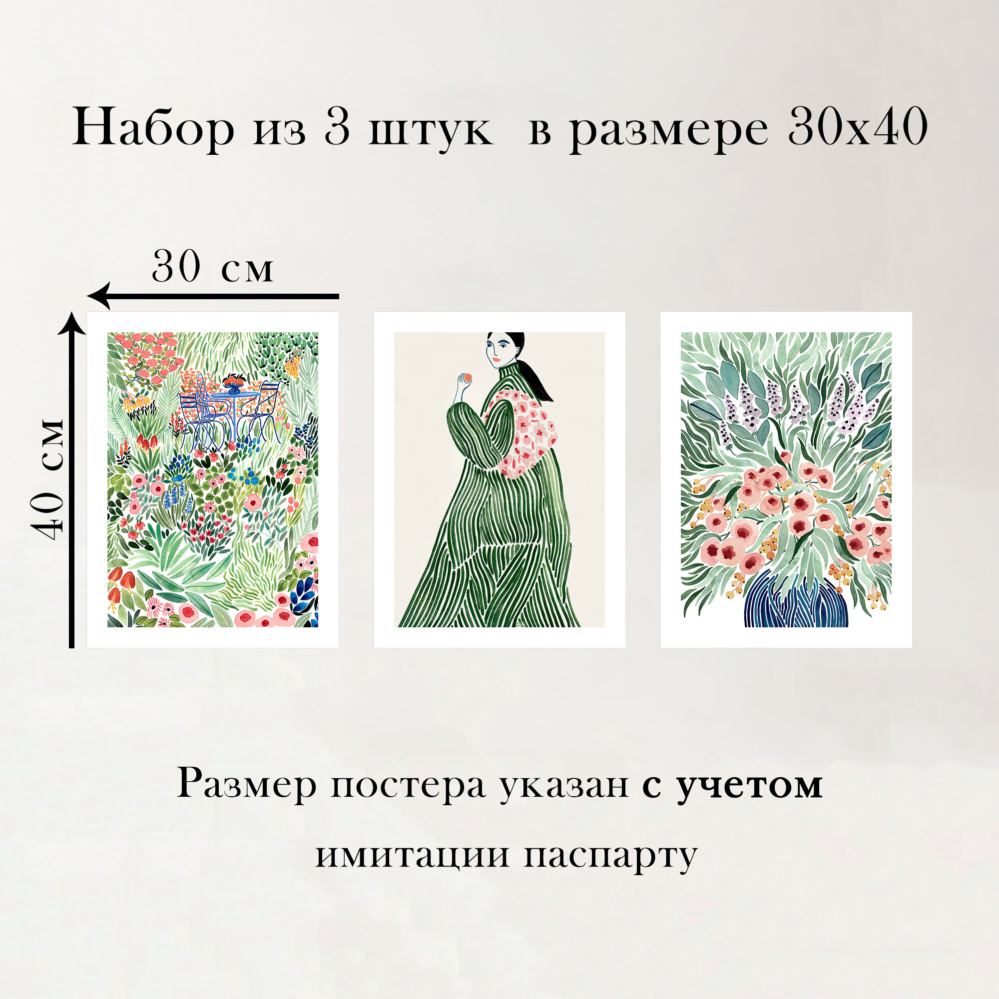 Набор интерьерных постеров "Зеленое пальто" 30х40 см 3 шт без рам информация: