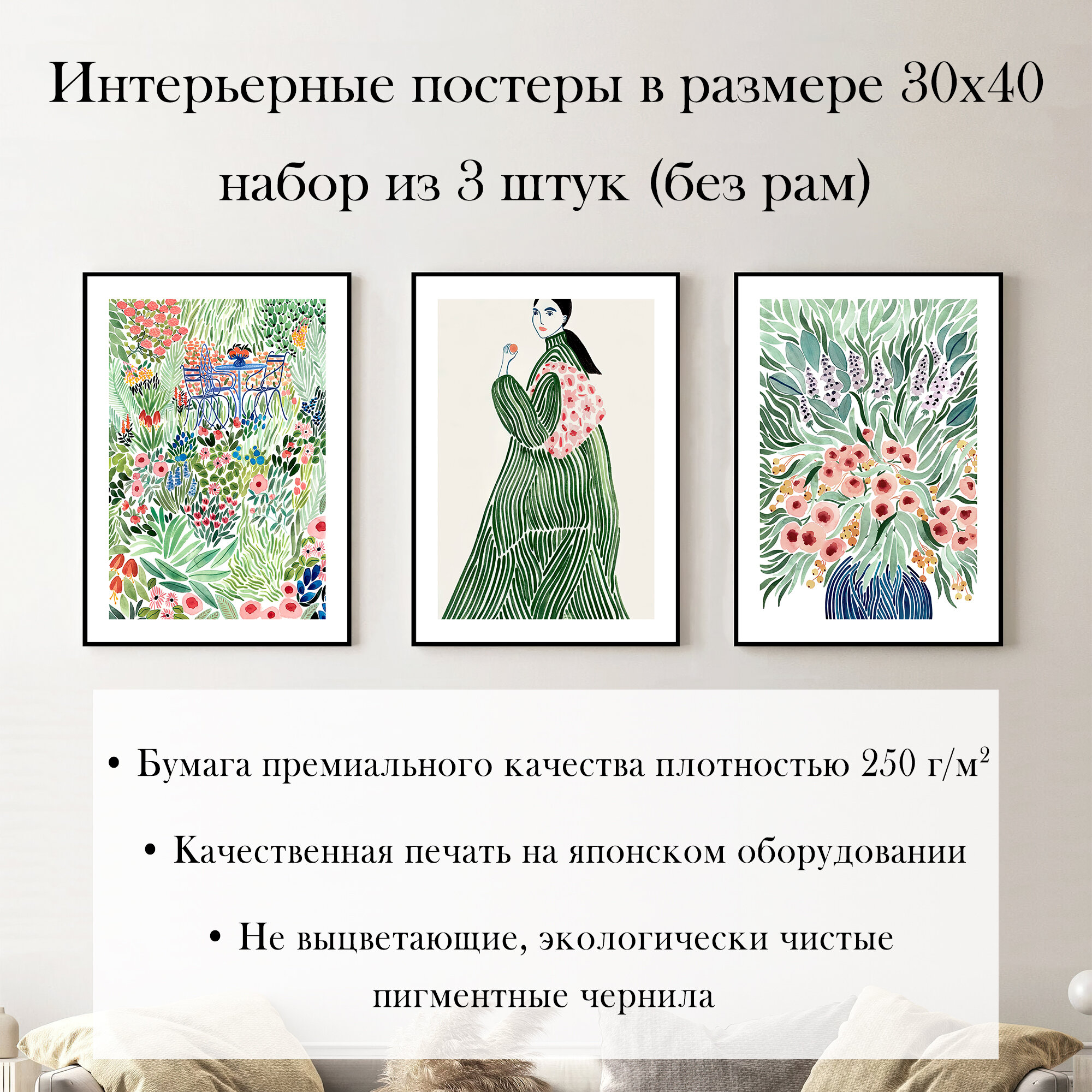 Отзывы на Набор интерьерных постеров "Зеленое пальто" 30х40 см 3 шт без рам