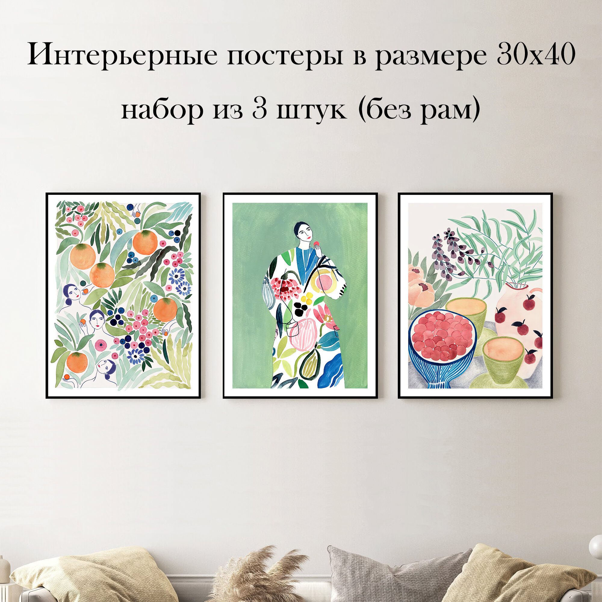 Отзывы на Набор интерьерных постеров "Грушевое пальто" 30х40 см 3 шт без рам