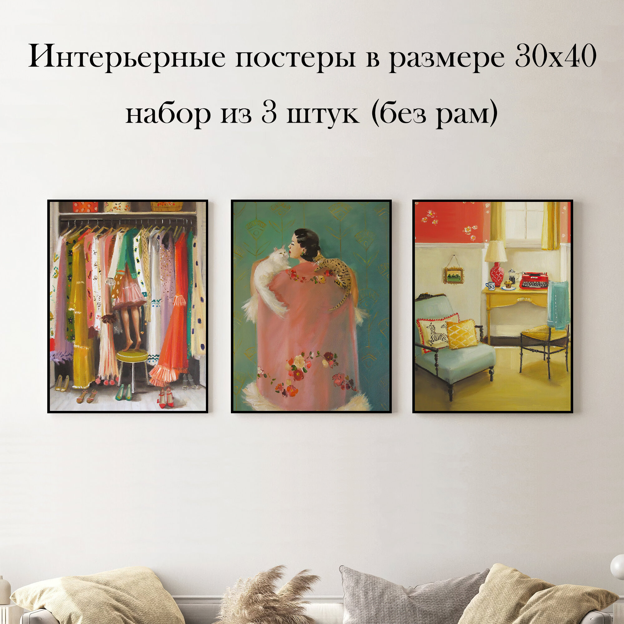 Набор интерьерных постеров "Зеленое пальто" 30х40 см 3 шт без рам 1 450 ₽