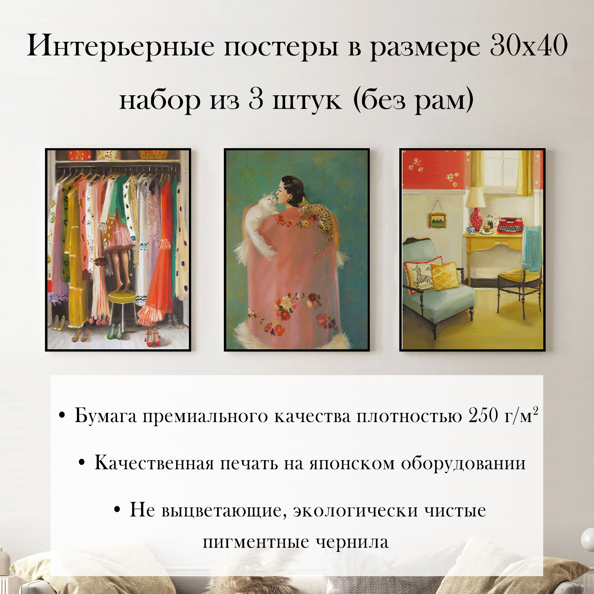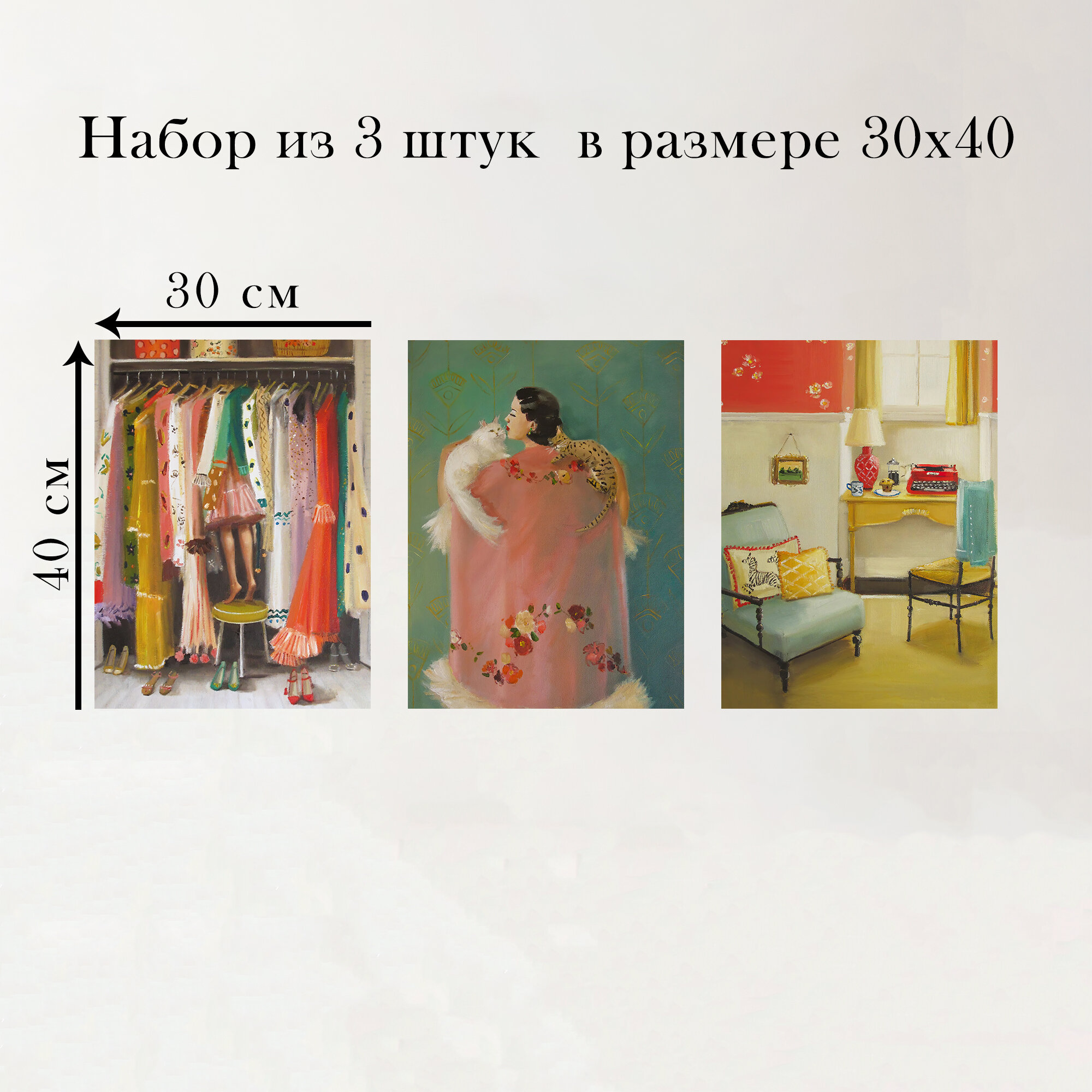 Набор интерьерных постеров "Графиня кошка" 30х40 см 3 шт без рам информация: