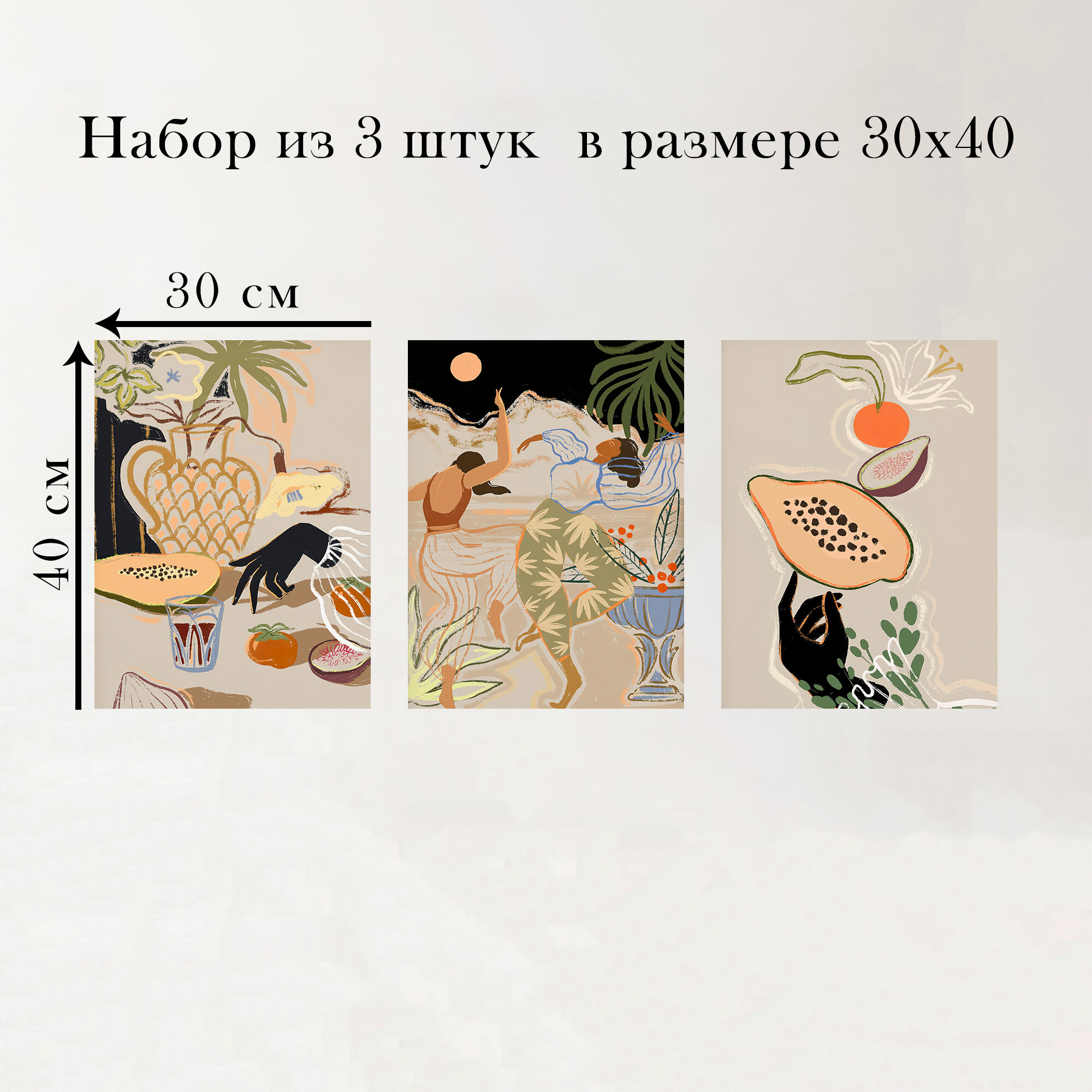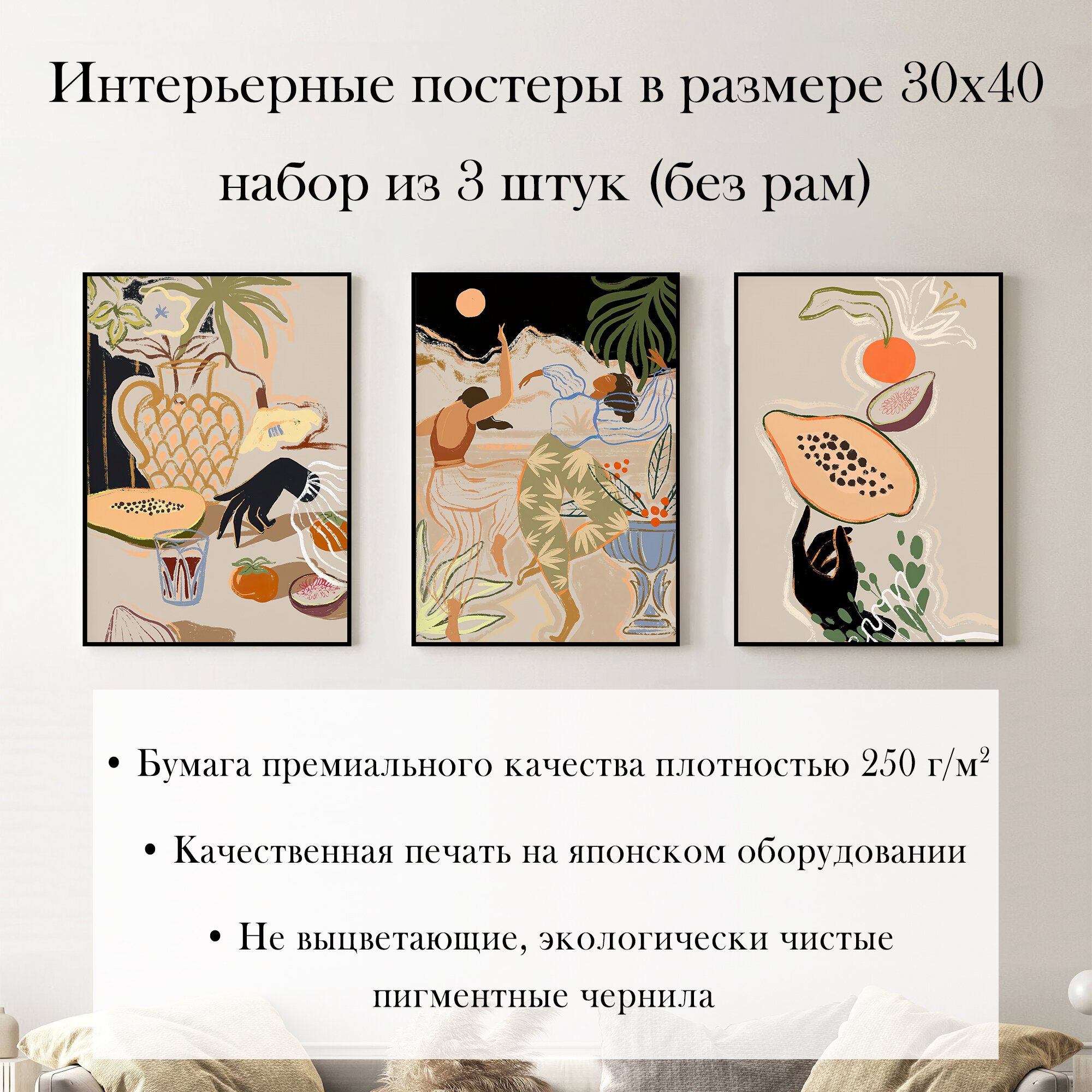 Набор интерьерных постеров "Танец" 30х40 см 3 шт без рам информация: