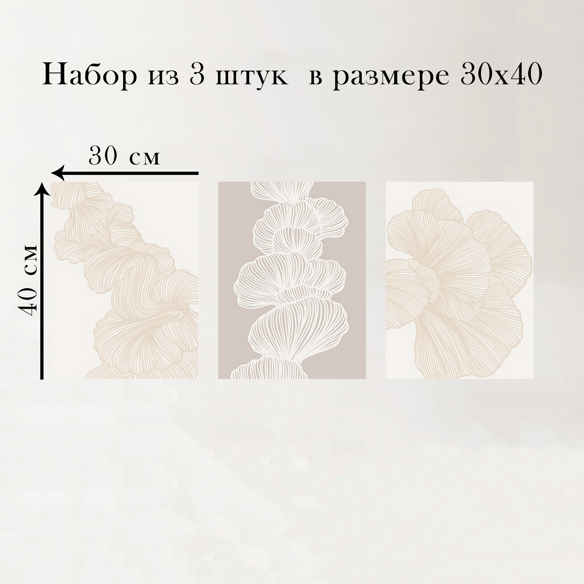 Набор интерьерных постеров "Линии в абстракции" 30х40 см 3 шт без рам информация: