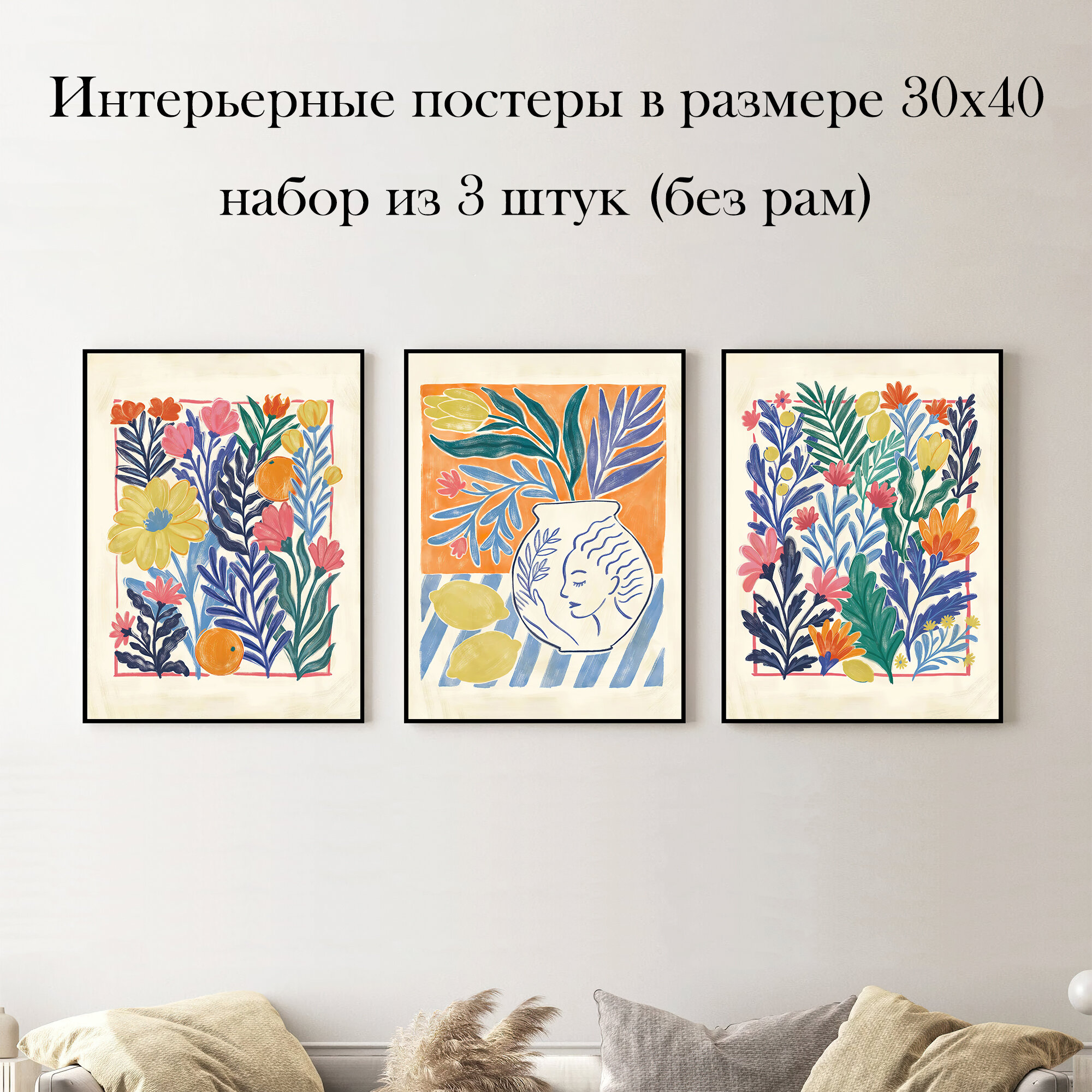 Набор интерьерных постеров "За цветами" 30х40 см 3 шт без рам 1 450 ₽