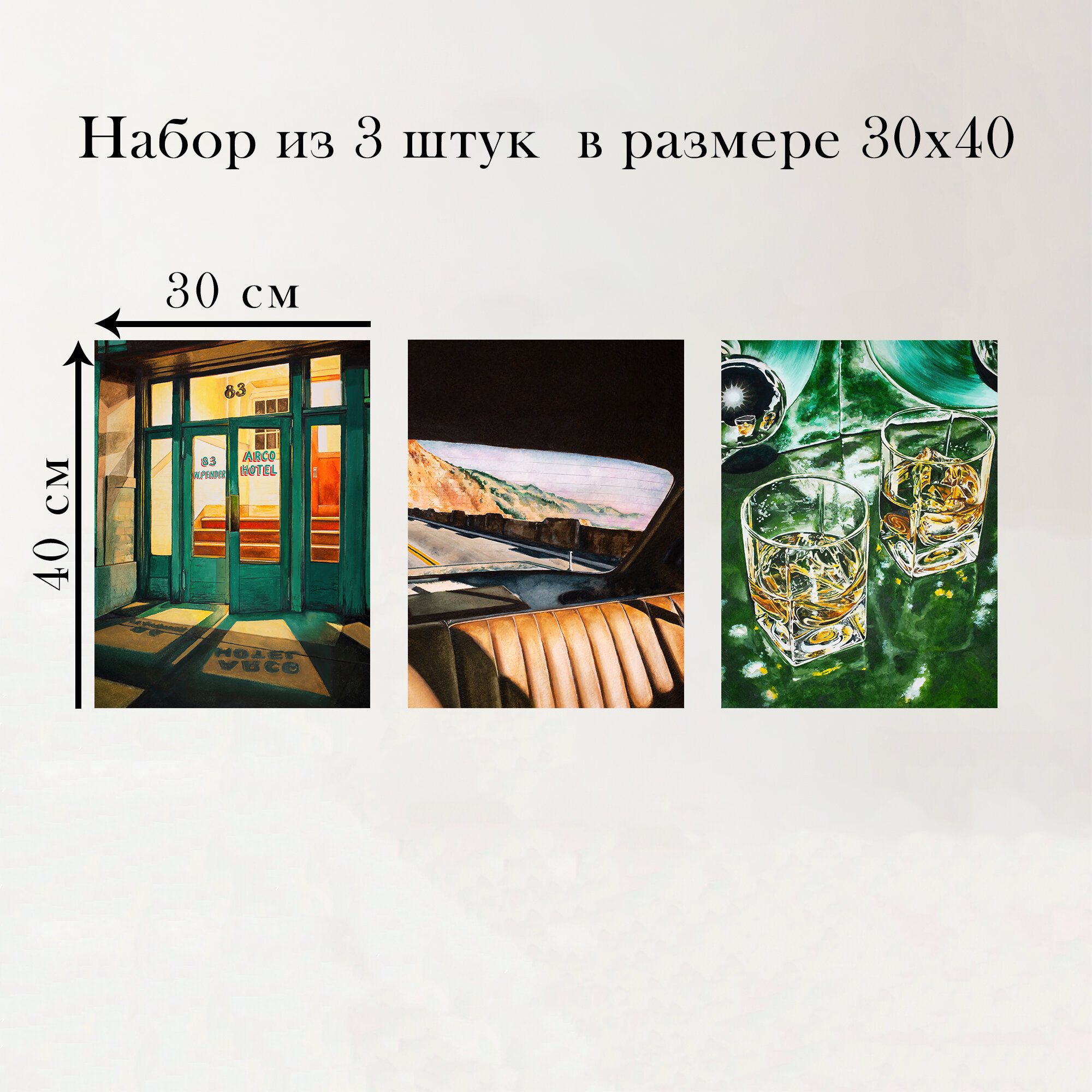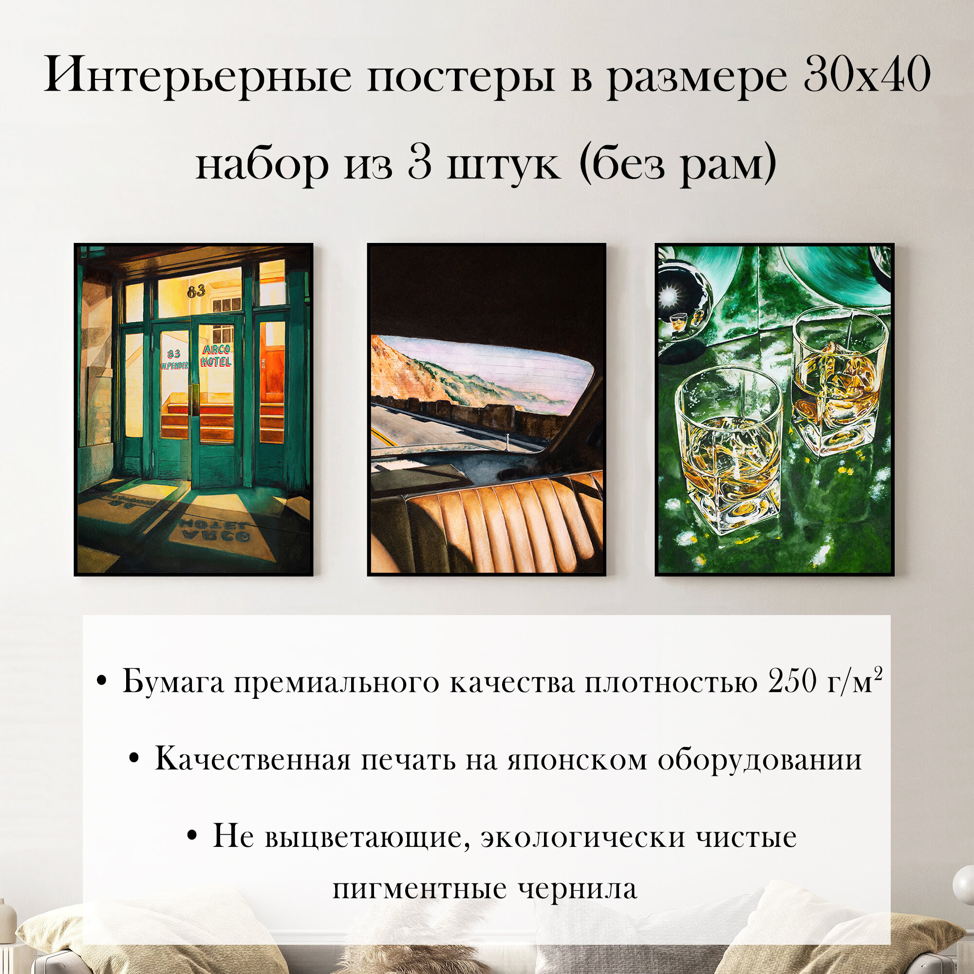 Набор интерьерных постеров "Отель 83" 30х40 см 3 шт без рам информация: