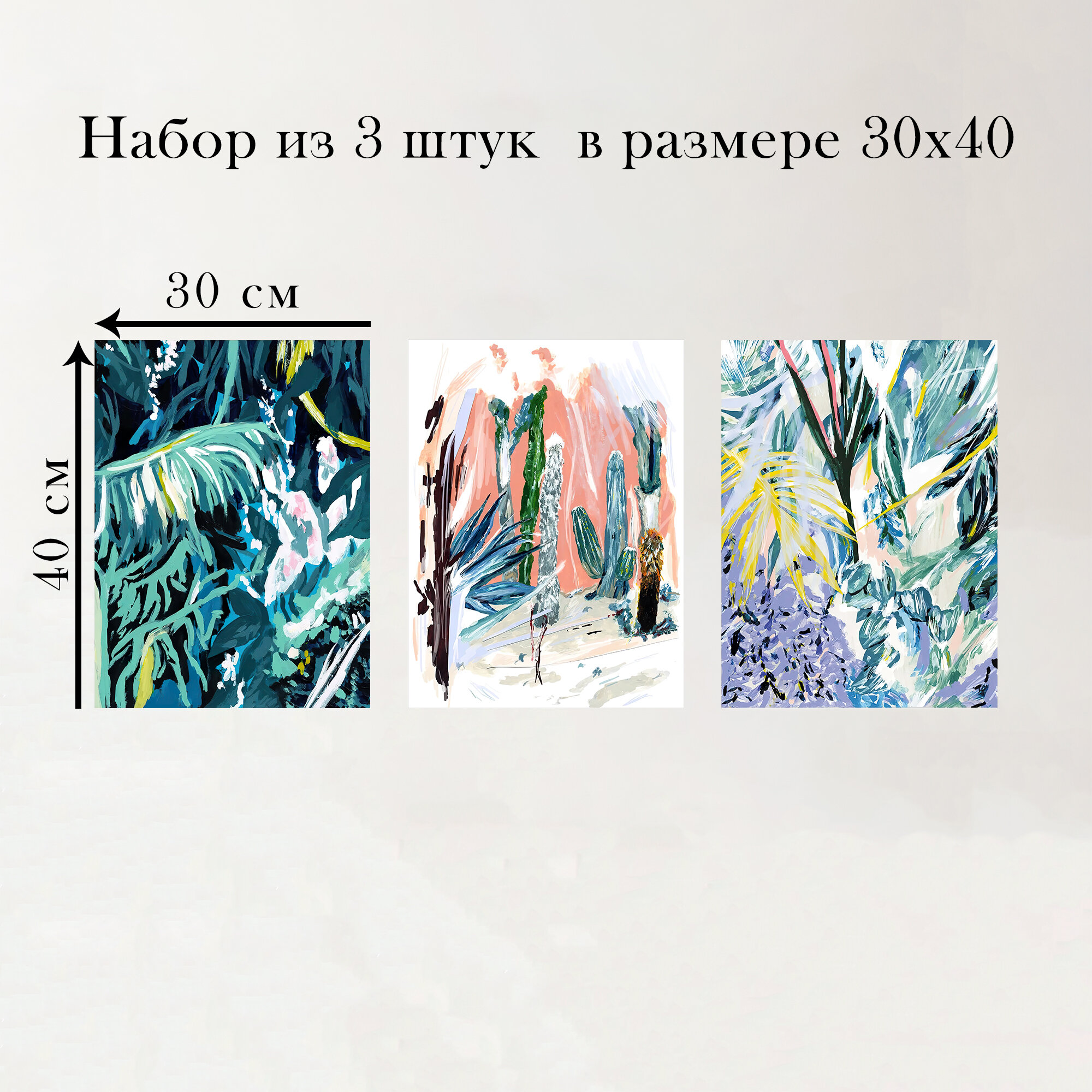 Набор интерьерных постеров "В джунглях" 30х40 см 3 шт без рам информация: