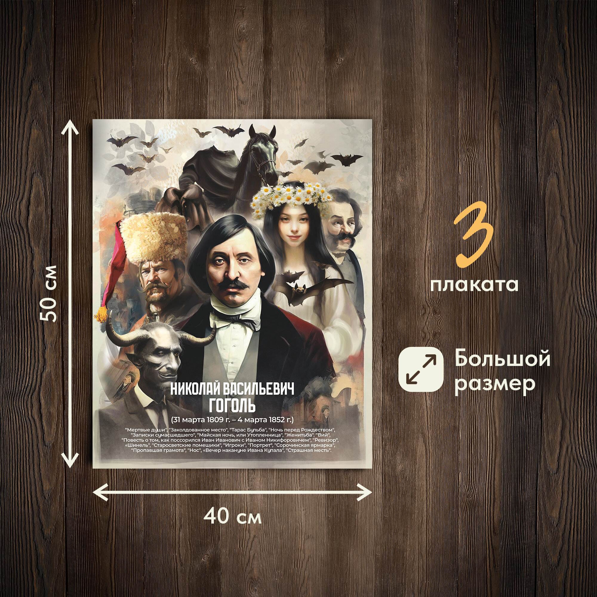 Плакаты «Писатели: Булгаков, Гоголь, Пушкин» информация: