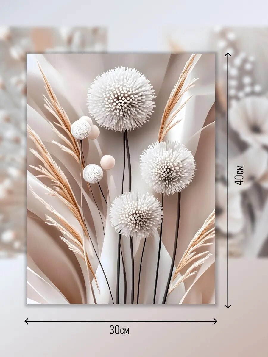Интерьерная картина "Золотые цветы" на натуральном хлопковом холсте, большая, размер 30 на 45/ 30х45 см