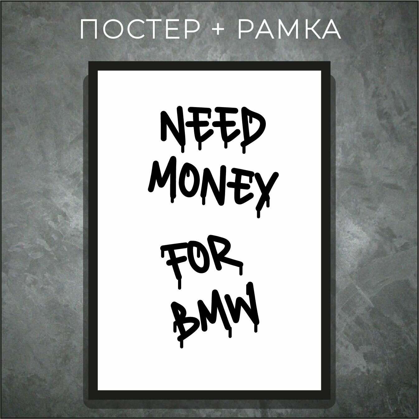 Постер Need money for bmw в рамке A4 / Интерьерный декор для дома, офиса, подарок автолюбителю, другу, парню информация: