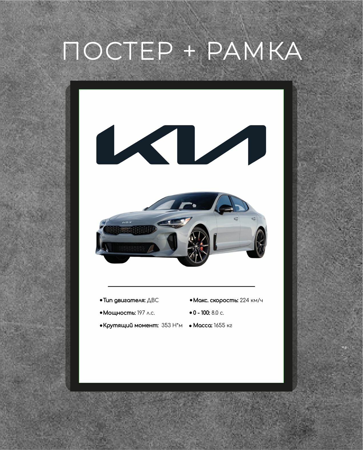 Постер KIA STINGER в рамке A4 / Интерьерный декор для дома, офиса, подарок автолюбителю, другу, парню информация: