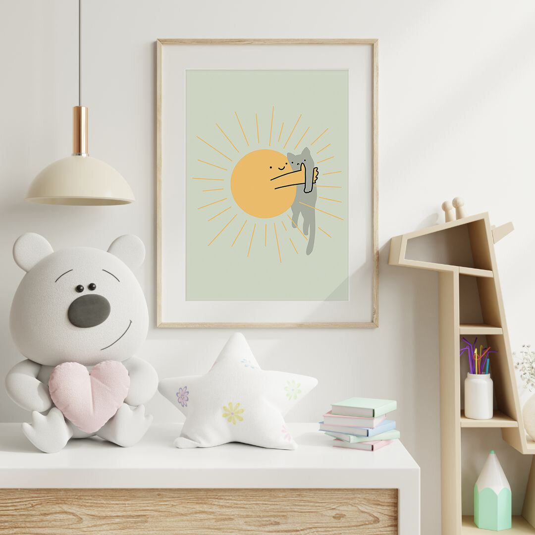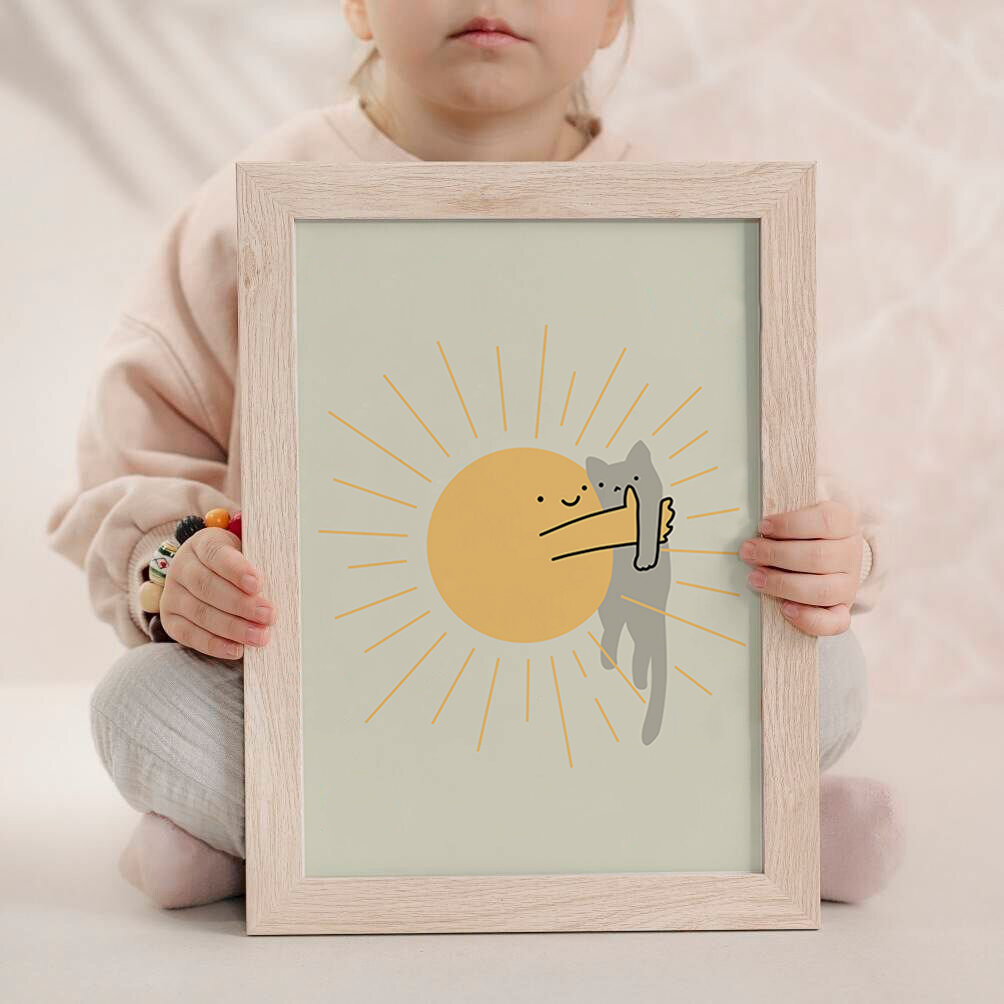 10 цен на Постер для интерьера MISHKA POSTER "Солнце и котик", А4 / Декор детской комнаты