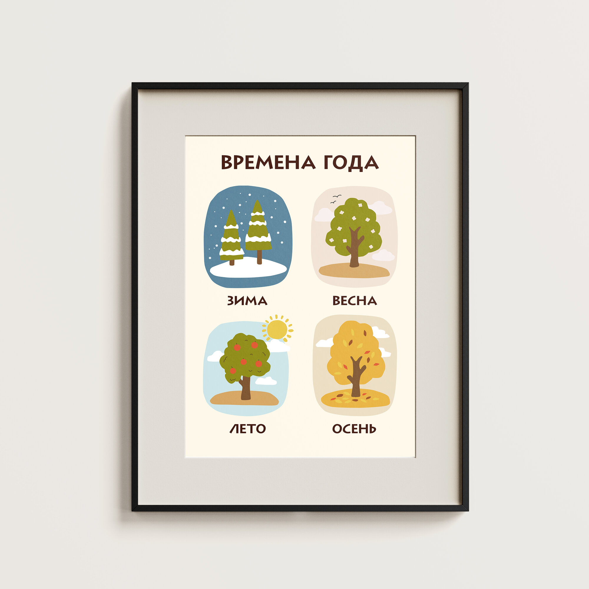 Постер детский обучающий MISHKA POSTER "Времена года", А4 / Плакат в детскую информация: