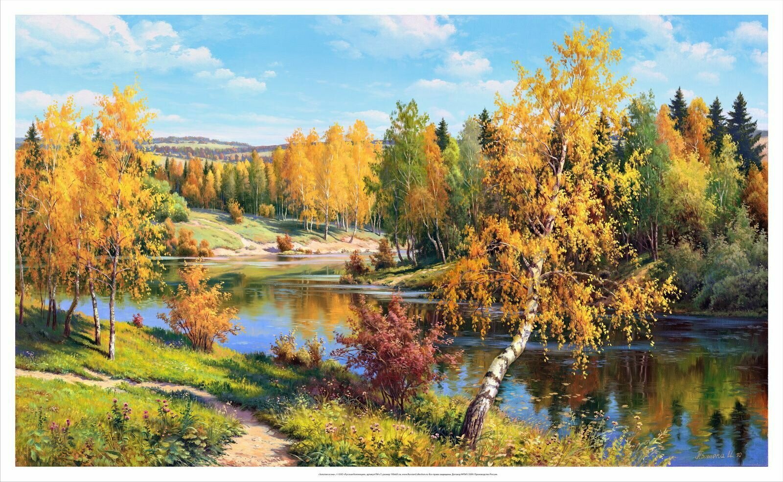 Постер на холсте, "Золотая осень", 100х60 см, художник - Прищепа И, Холст в рулоне, Арт. ПИ-р7 1 872 ₽