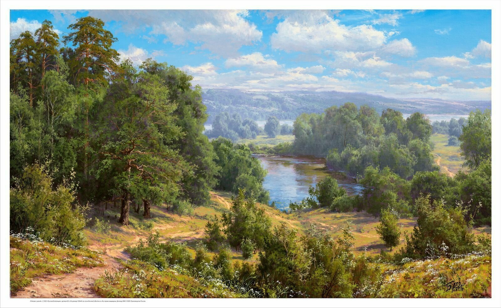 Постер на холсте, "Пейзаж с рекой", 100х60 см, художник - Басов Сергей. Холст в рулоне, Арт. БС-р54 информация: