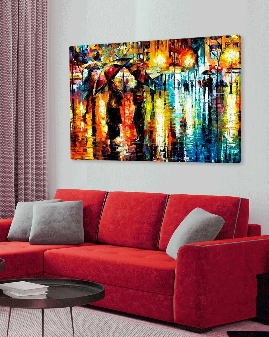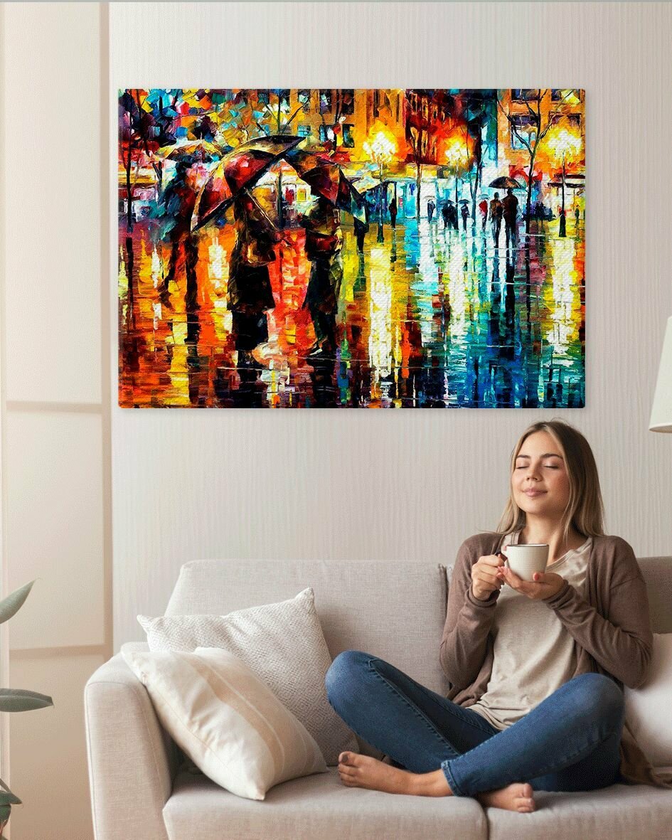 Отзывы на Картина на холсте для интерьера репродукция Леонид Афремов Дождливая встреча 60х80 см