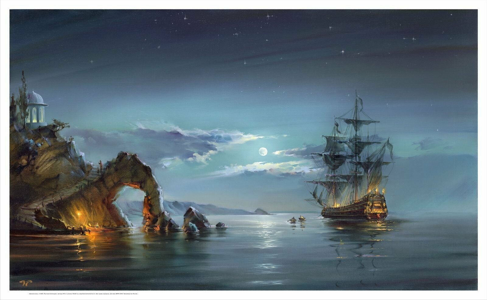 Постер на холсте, "Лунная ночь", 50х70 см, художник - Романов Роман. Холст в рулоне, Арт. РР-р1-50х70 информация: