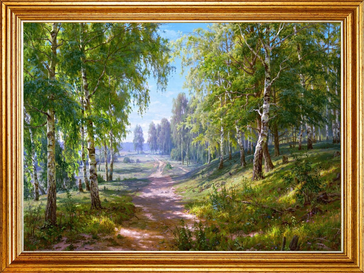 Картина на холсте, "Берёзовая роща", 80х60 см, художник - Басов Сергей. Холст на деревянном подрамнике, оформлена в багет, Арт. БС-х15