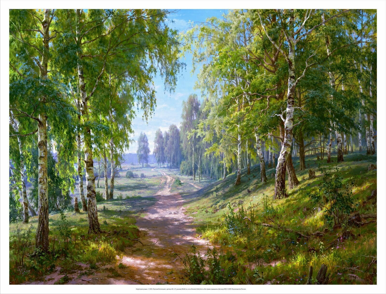 Постер на холсте, "Берёзовая роща", 80х60 см, художник - Басов Сергей. Холст в рулоне, Арт. БС-р15 информация: