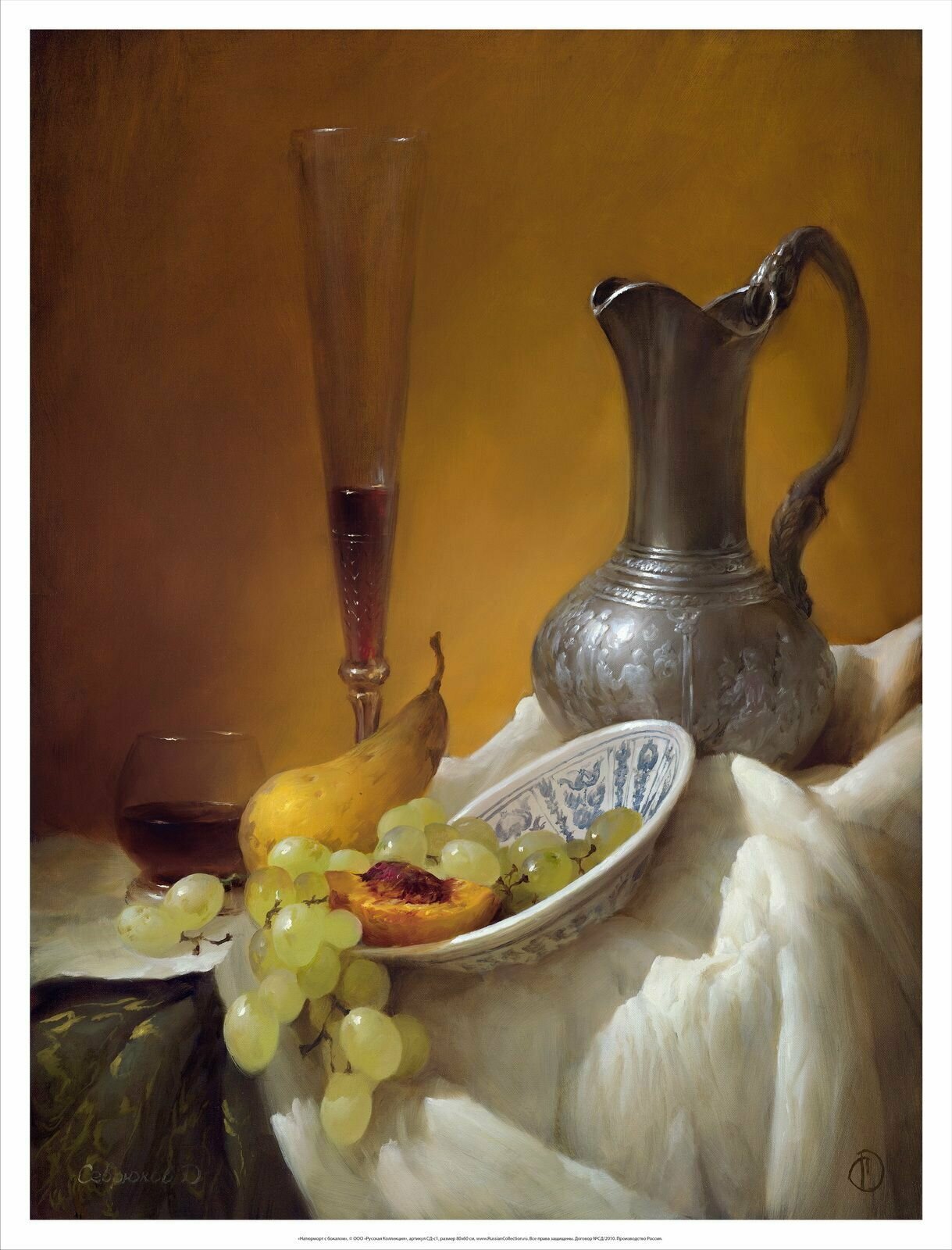 Постер на холсте "Натюрморт с бокалом", 80х60 см, художник - Севрюков Д, Холст в рулоне, Арт. СД-р1 информация: