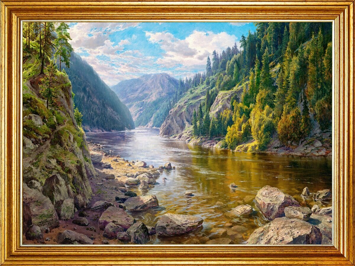 10 цен на Картина "Горная речка", 30х40 см, художник - Басов Сергей. Арт. БС39-30х40