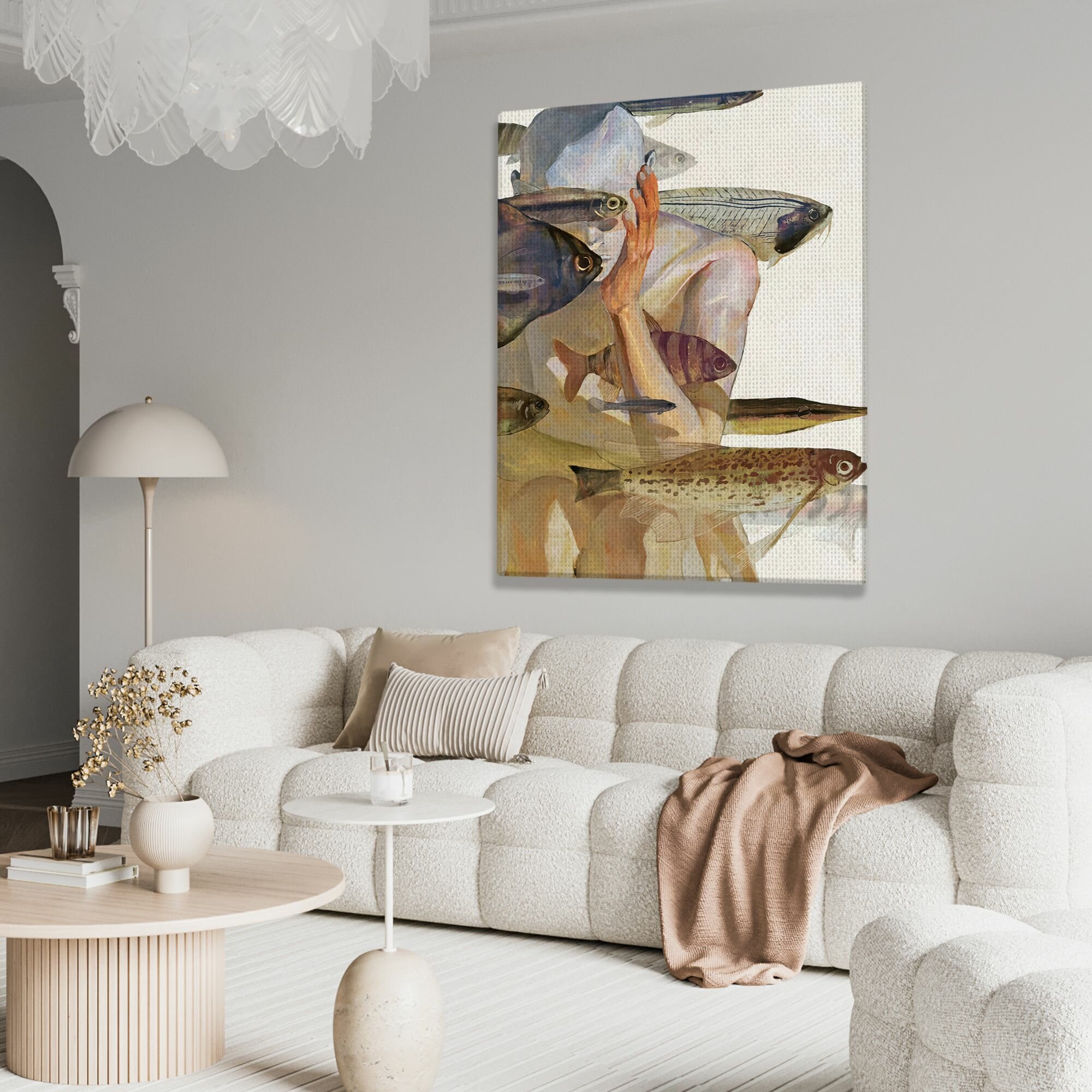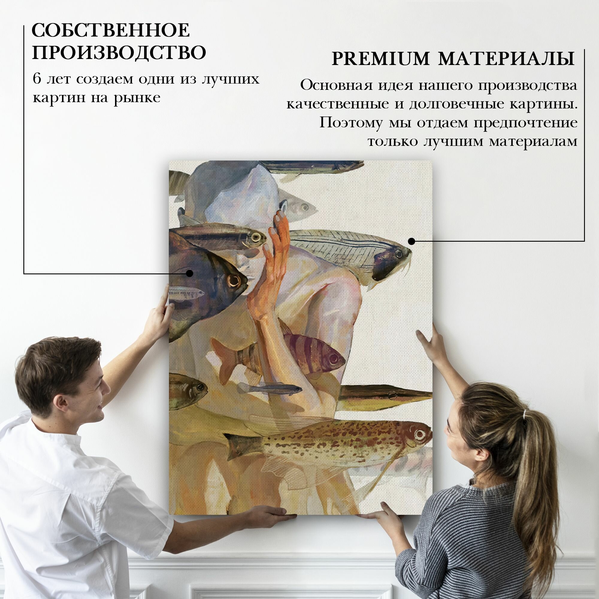 Отзывы на Картина на холсте для интерьера - Силуэт человека с рыбами 30х40 см