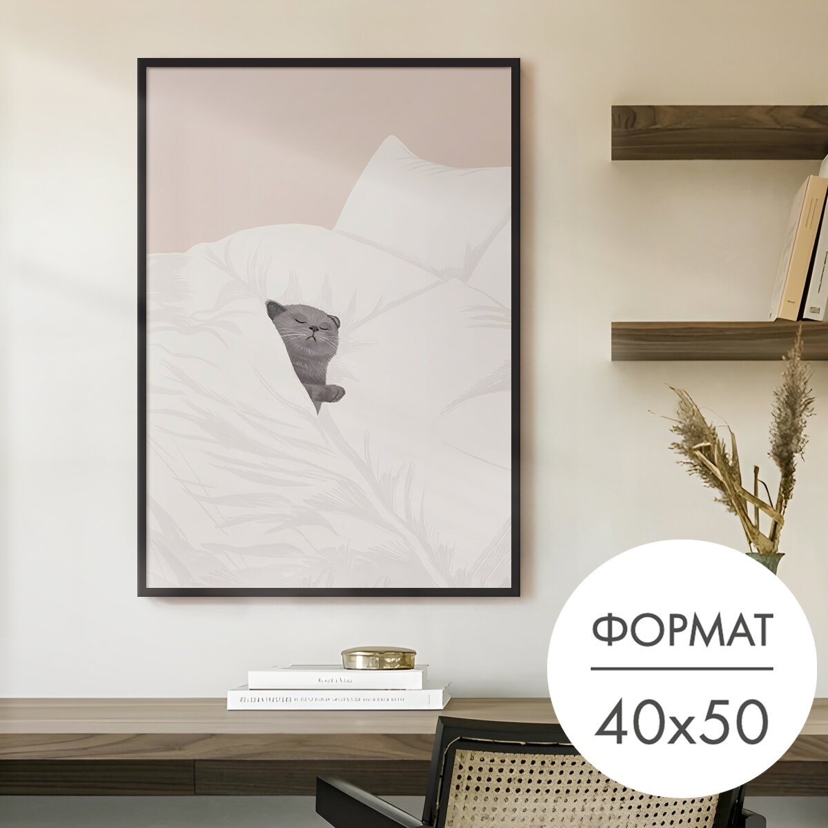 10 цен на Постер "Кот под одеялом" 40x50 без рамки на стену для интерьера