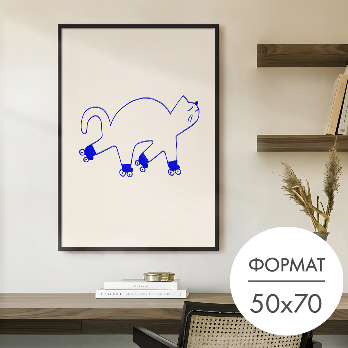 10 цен на Постер "Кот на роликах" 50x70 без рамки на стену для интерьера