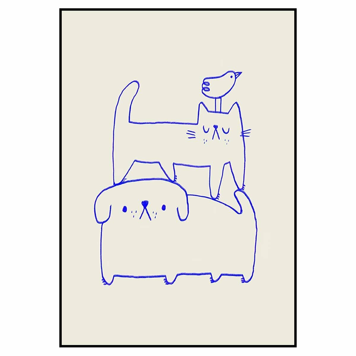 10 цен на Постер "Собака, кот и птица" 40x50 без рамки на стену для интерьера