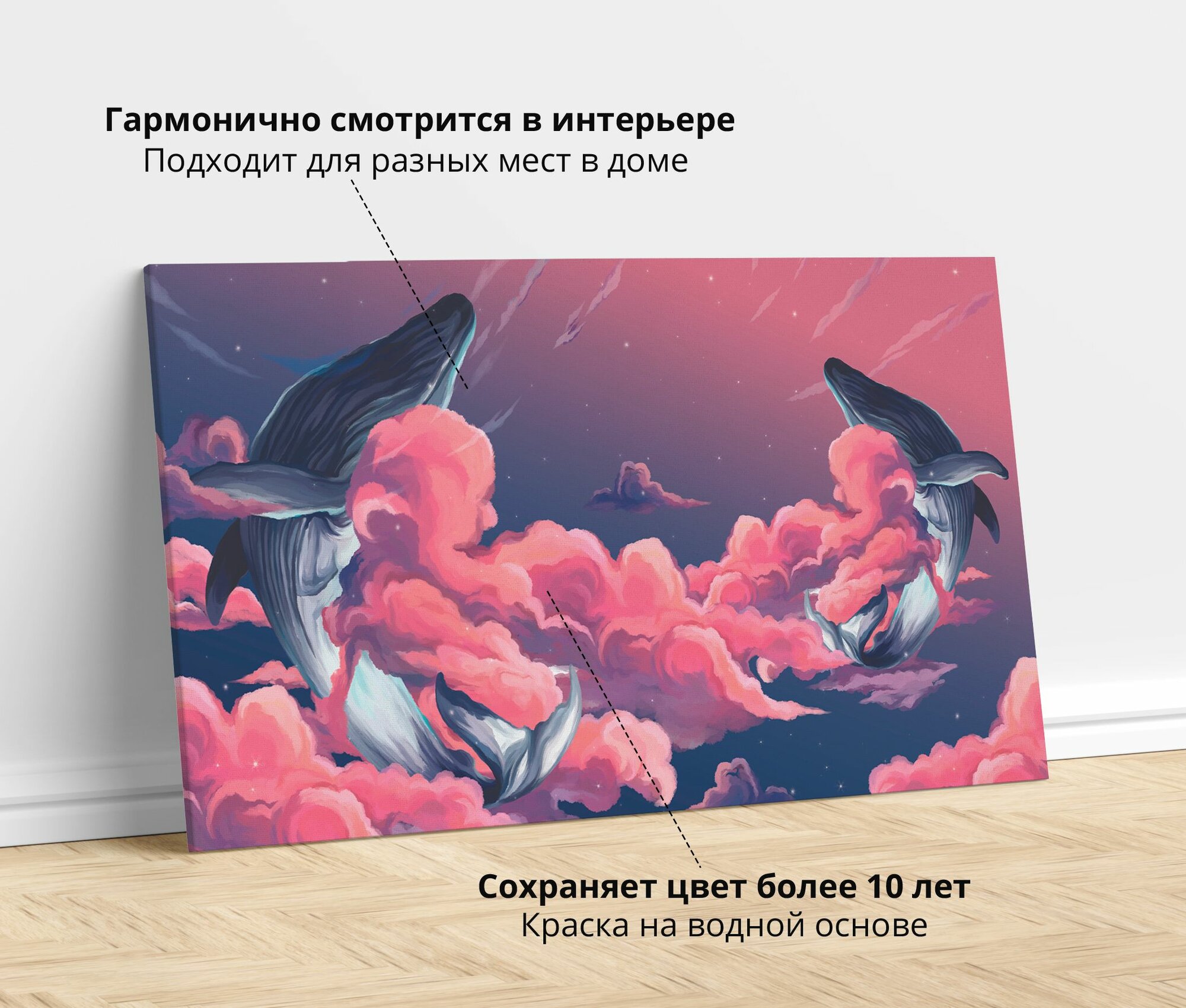 Картина на стену большая на холсте интерьерная Киты в облаках 60х90 см информация: