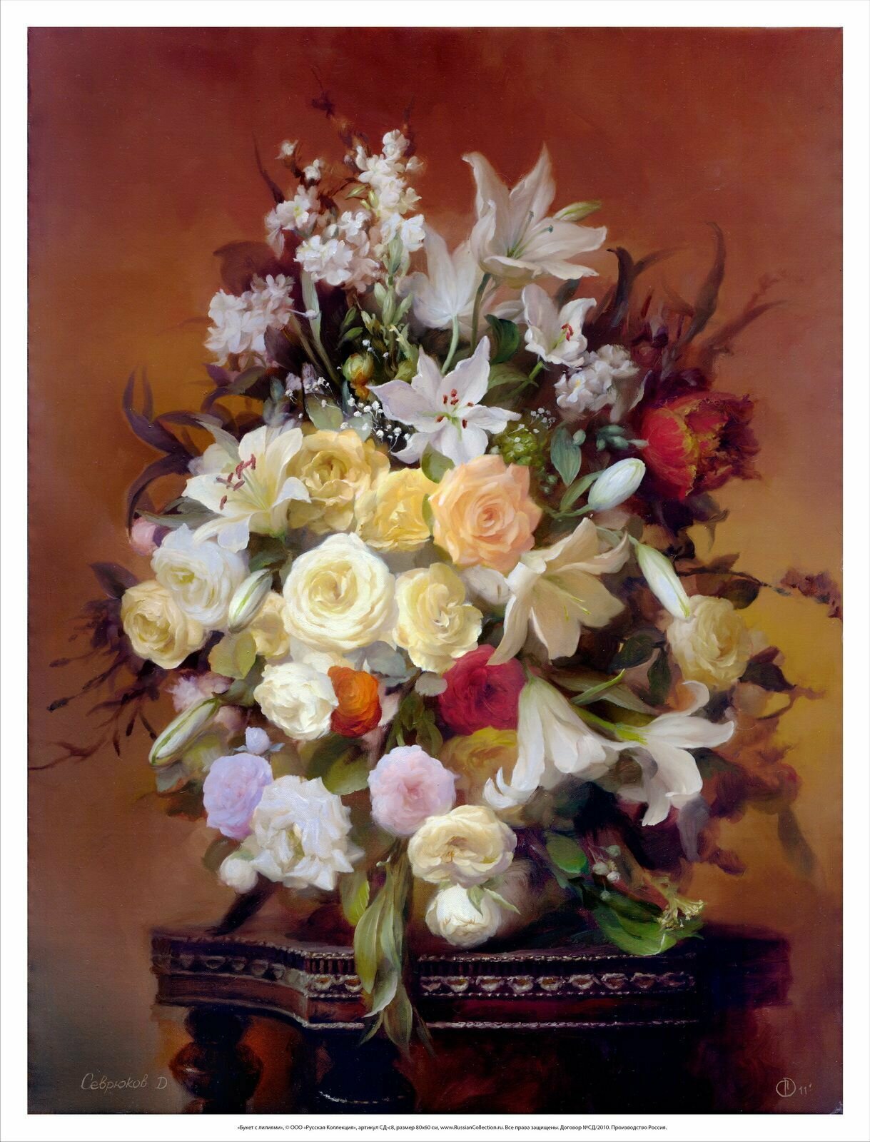 Постер на холсте "Букет с лилиями", 80х60 см, художник - Севрюков Д. Холст в рулоне, Арт. СД-р8 информация:
