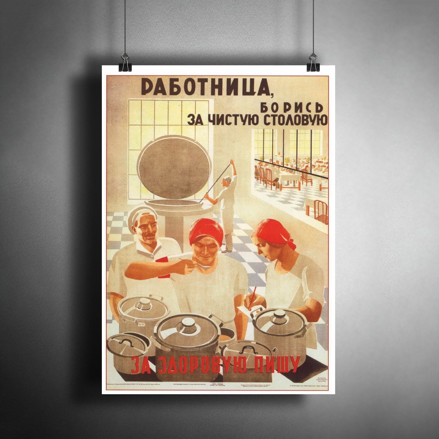 Постер плакат для интерьера "Плакат Советский "Работница, борись за чистую столовую" / A3 (297 x 420 мм) информация: