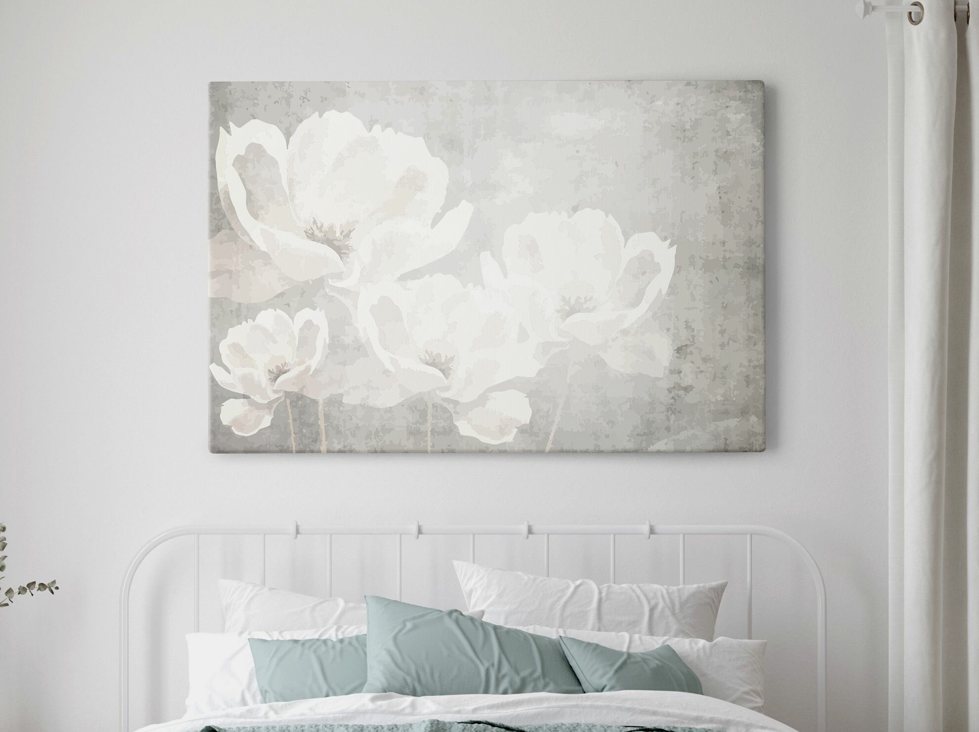 Картина на натуральном холсте "Белые цветы в сером" в размере 80х115 см на стену, для интерьера, для дома, для комнаты, в спальню 6 141 ₽