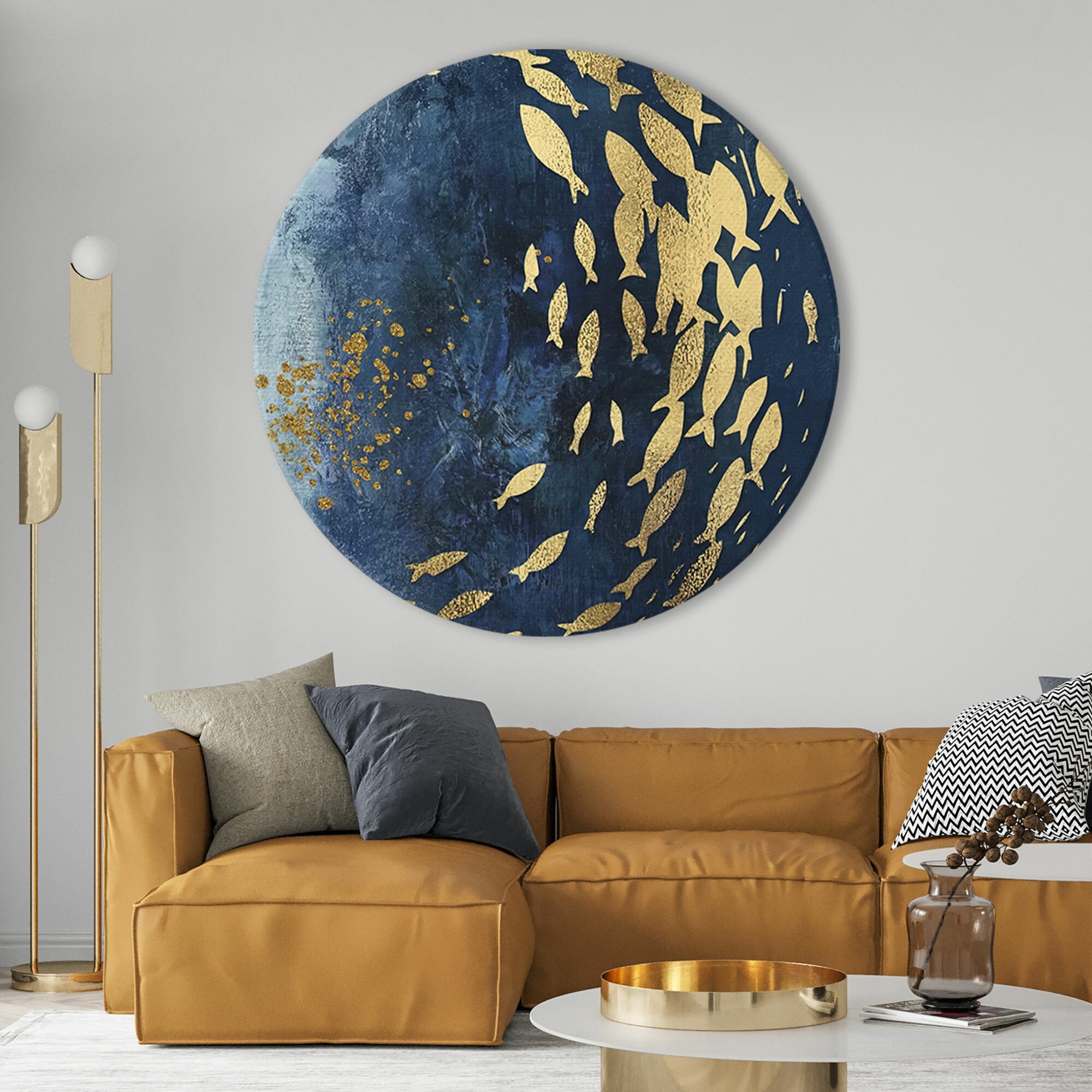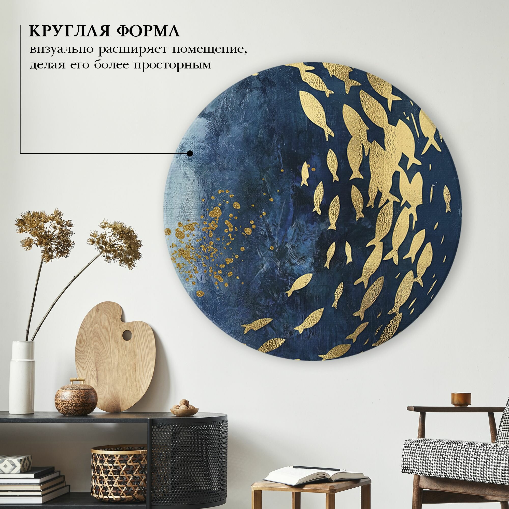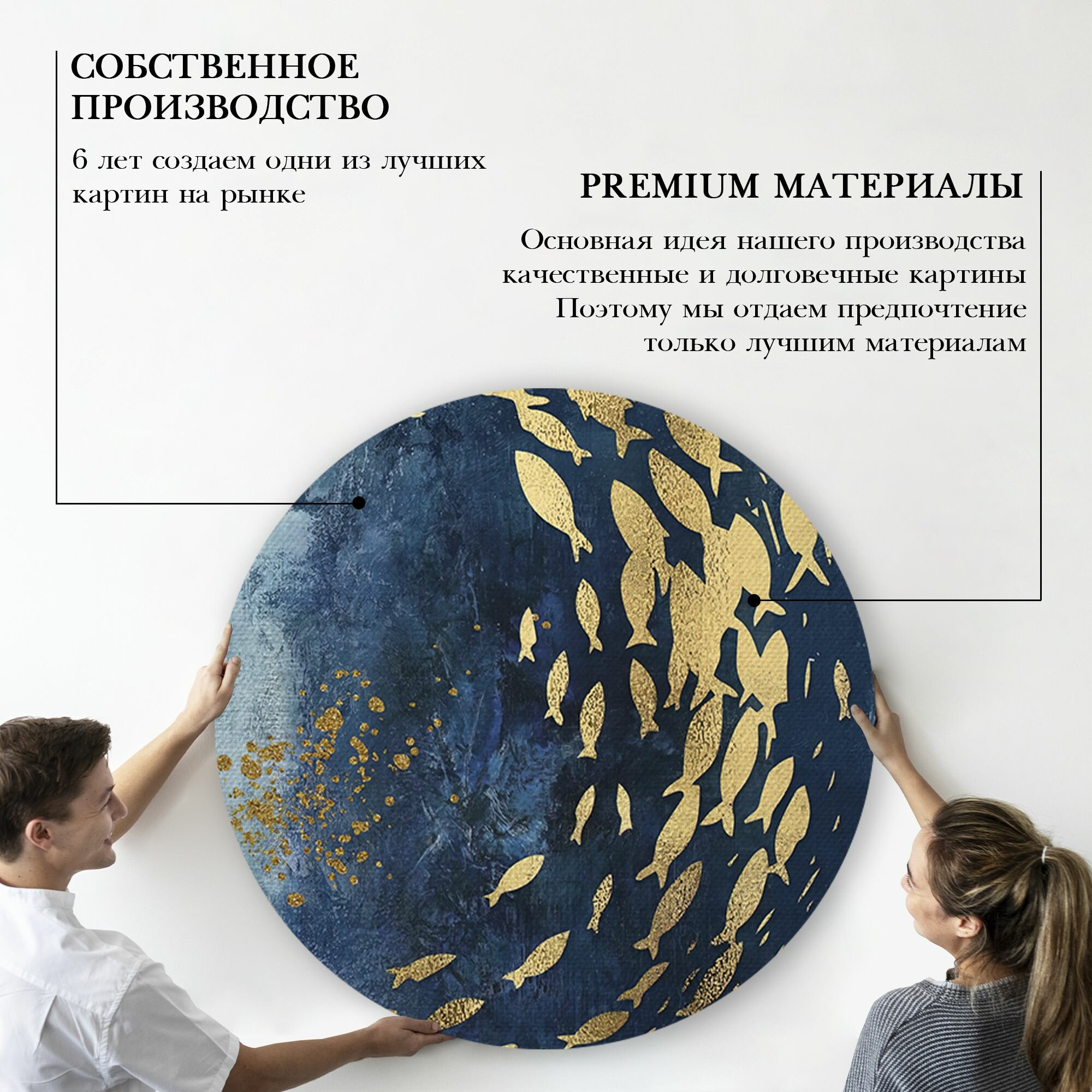 Круглая картина на холсте для интерьера - Золотые рыбы абстракция 60 см информация: