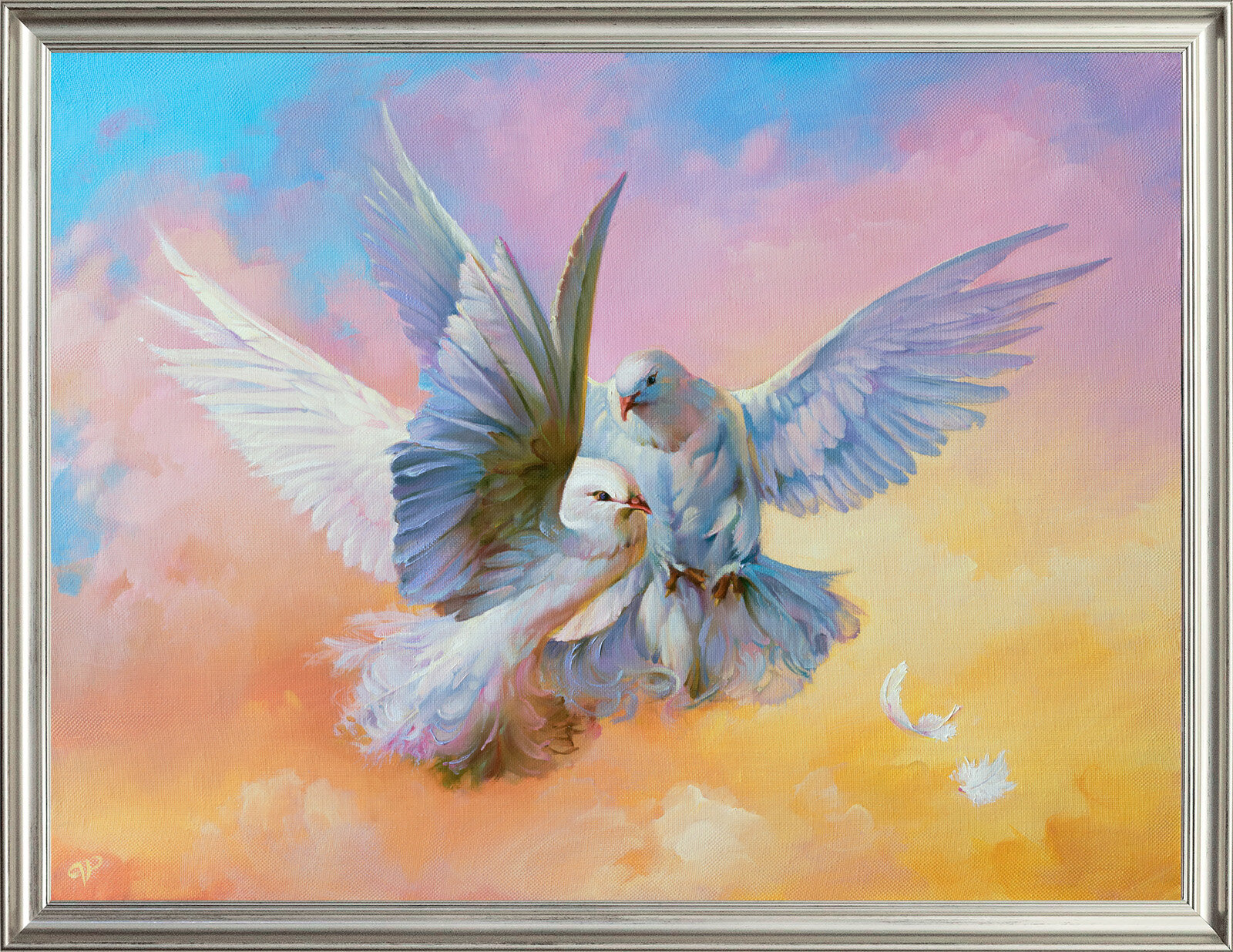 Картина "Голуби", 50х70 см, художник - Романов Роман, оформлена в багет. Арт. РР13-50х70