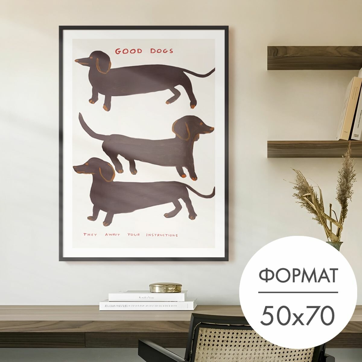 10 цен на Постер "Таксы Дэвид Шригли" 50х70 без рамы, плакат на стену