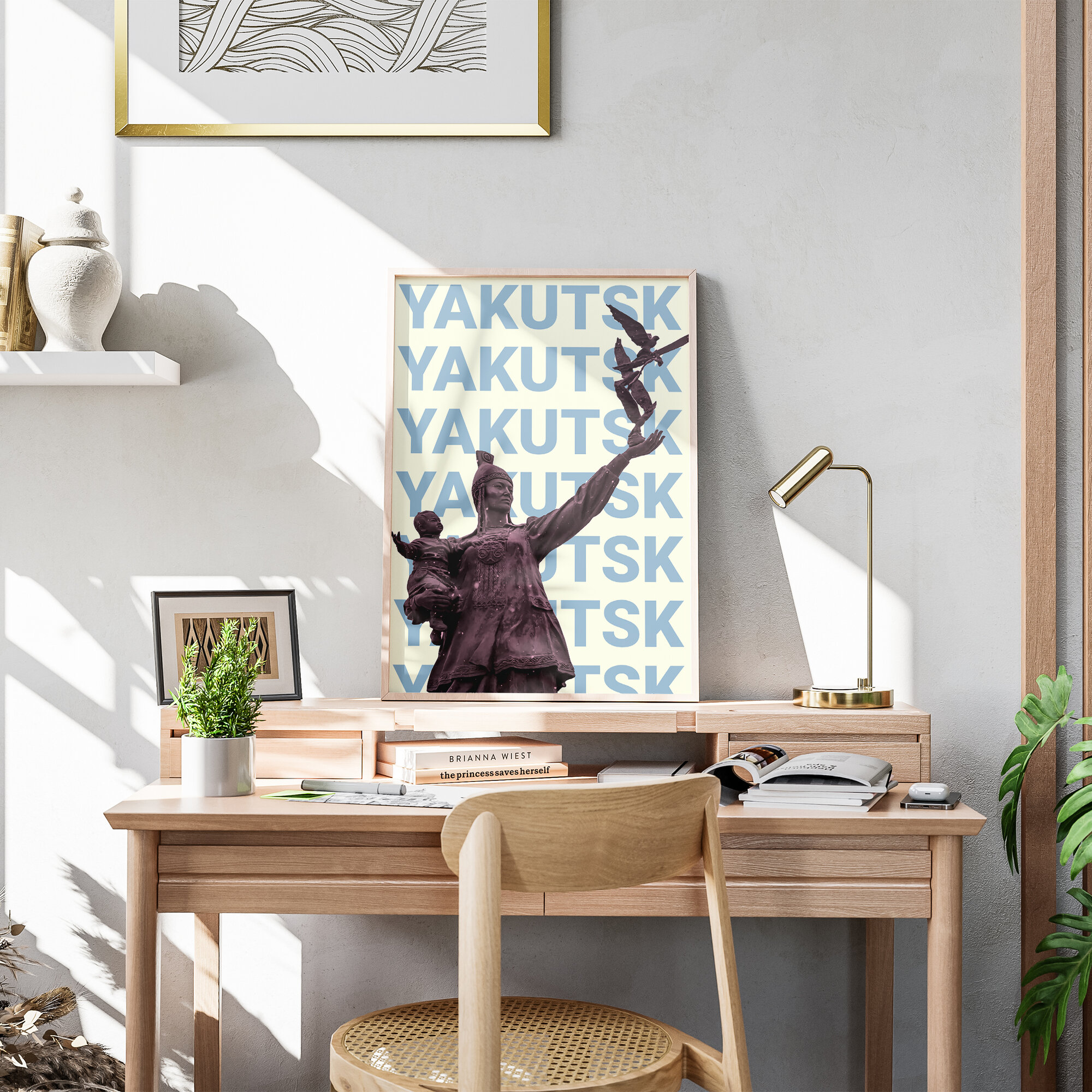 Постер для интерьера MISHKA POSTER "Якутск" / Интерьерный плакат А3 Города России информация: