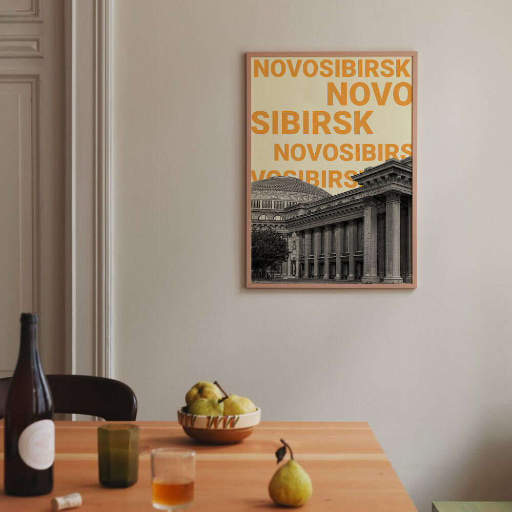Постер для интерьера MISHKA POSTER "Новосибирск" / Интерьерный плакат А4 Города России информация: