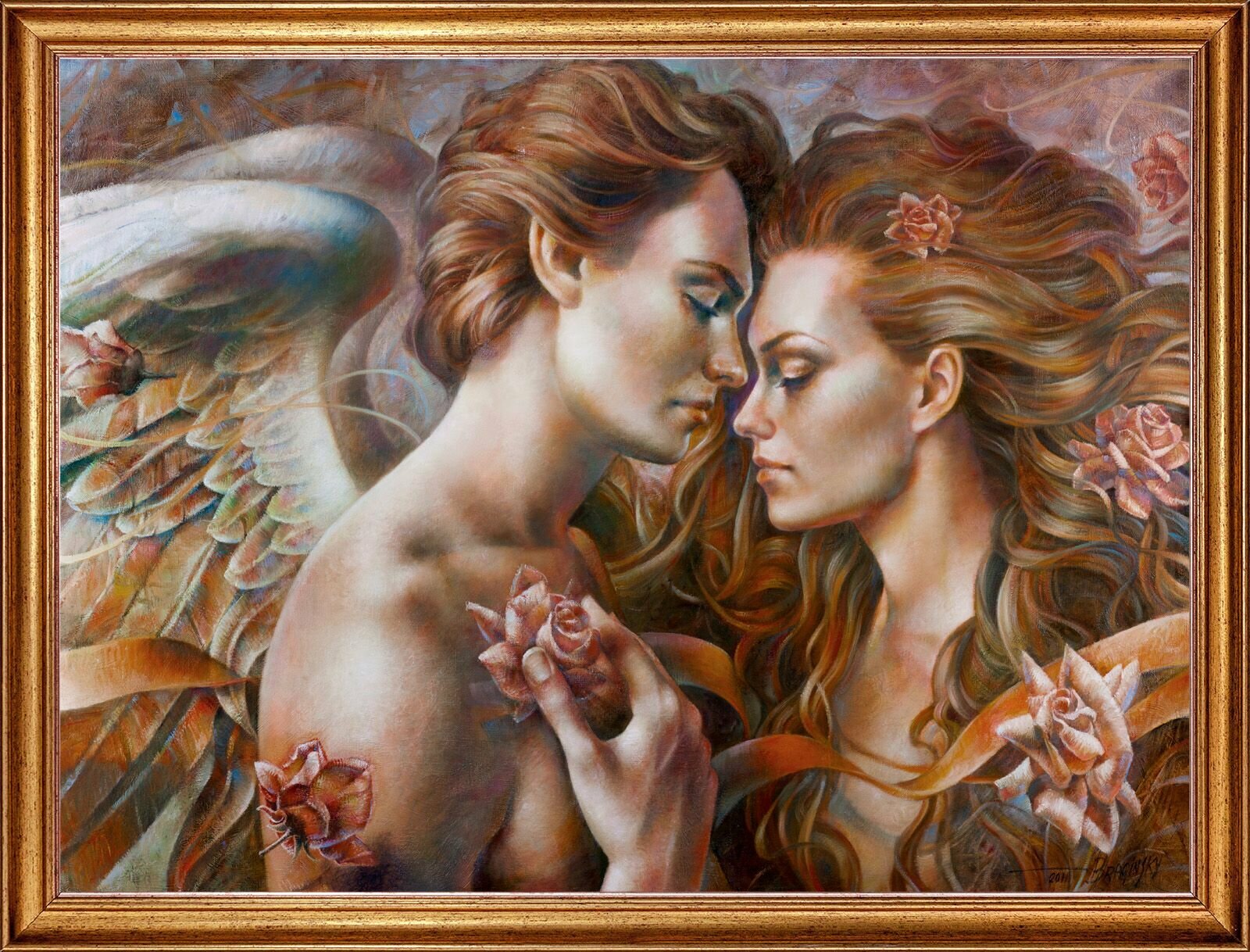 10 цен на Картина на холсте "Прикосновение Ангела" 80х60 см, художник - Брагинский. Холст на деревянном подрамнике, оформлена в багет Арт. БА-х9