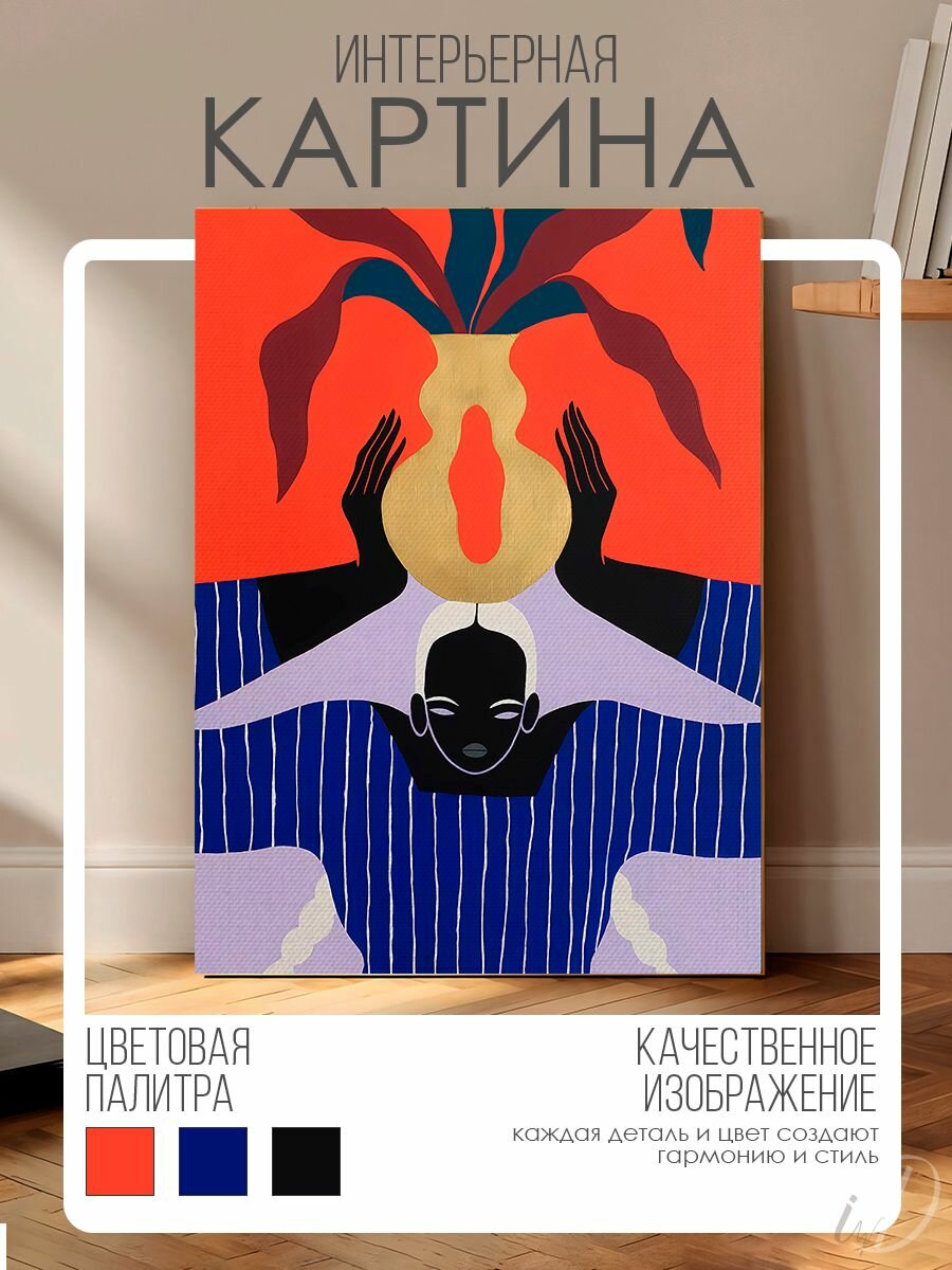 Картина на стену для интерьера девушка с вазой сканди 50х70 см информация: