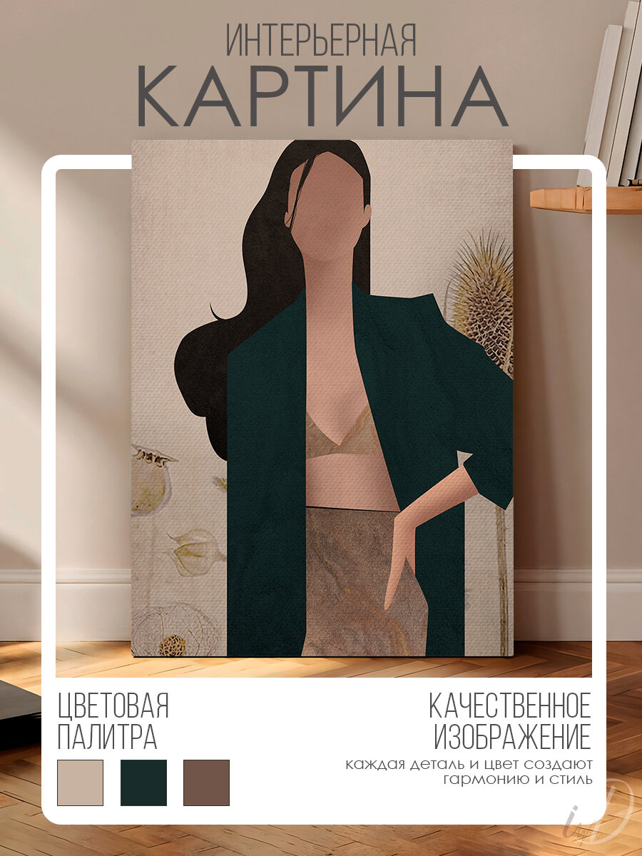 Картина на стену для интерьера девушка геометрия бежевый 60х80 см информация: