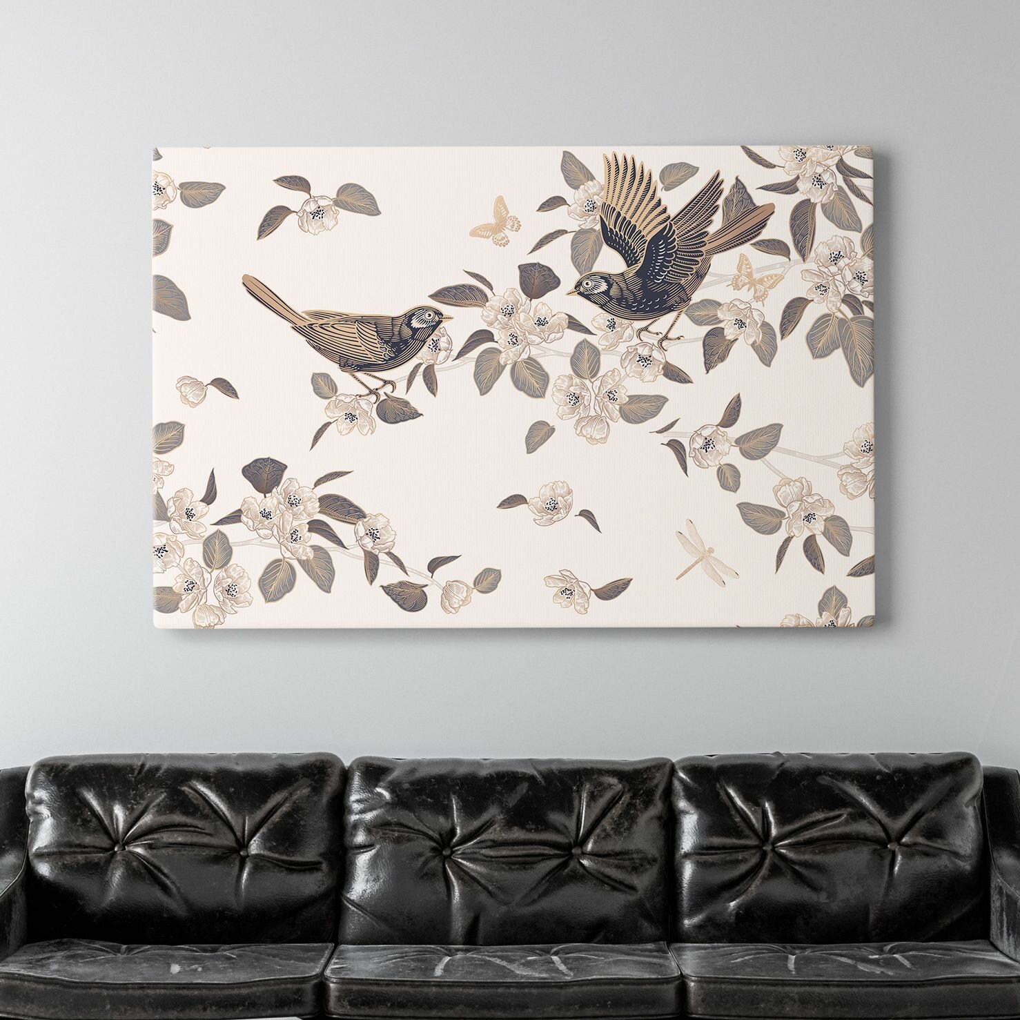 Интерьерная картина "Птицы на цветущем дереве" на холсте, большая, размер 60 на 90/ 60х90 см 4 290 ₽
