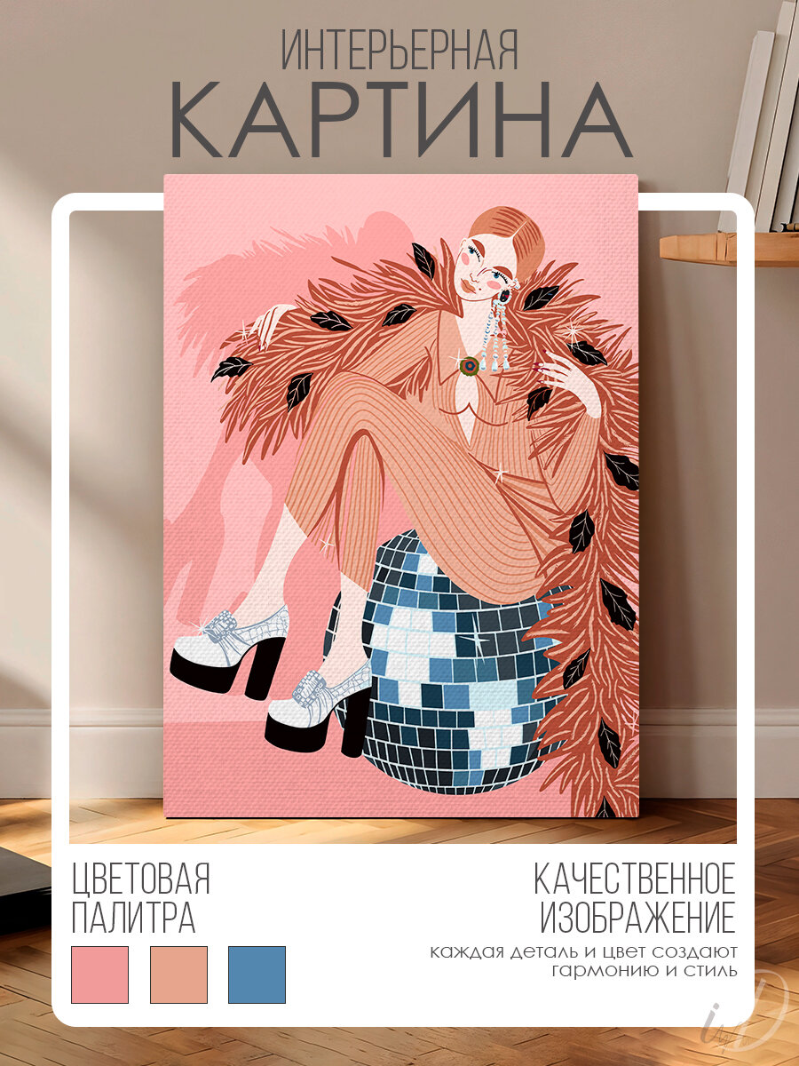 10 цен на Картина на стену для интерьера диско девушка на шаре 40х60 см