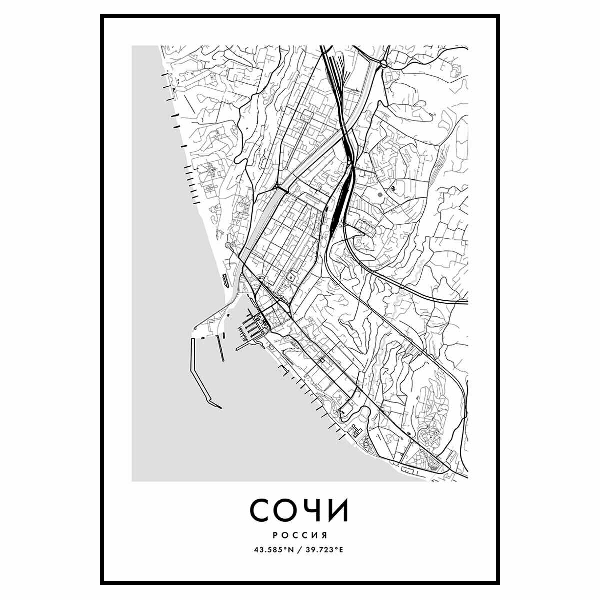 10 цен на Постер "Карта Сочи" 50x70 без рамки на стену для интерьера
