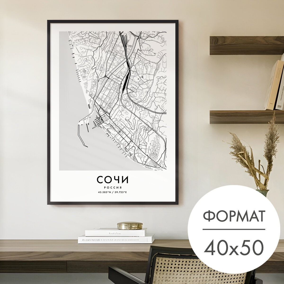 10 цен на Постер "Карта Сочи" 40x50 без рамки на стену для интерьера