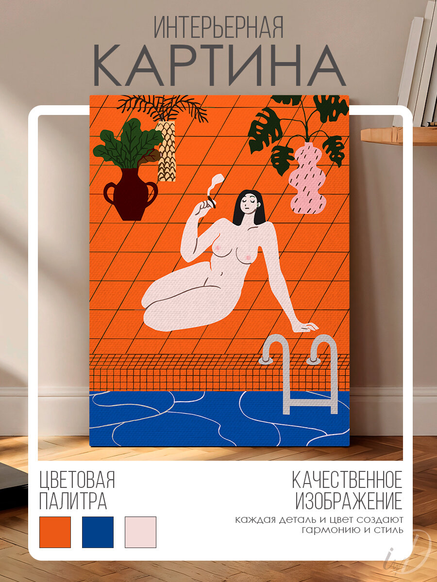Картина на стену для интерьера девушка у бассейна поп арт 50х70 см информация: