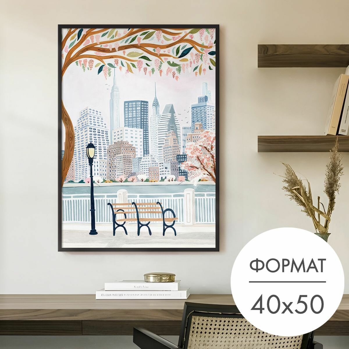 10 цен на Постер "Набережная Нью-Йорк" 40x50 без рамки на стену для интерьера