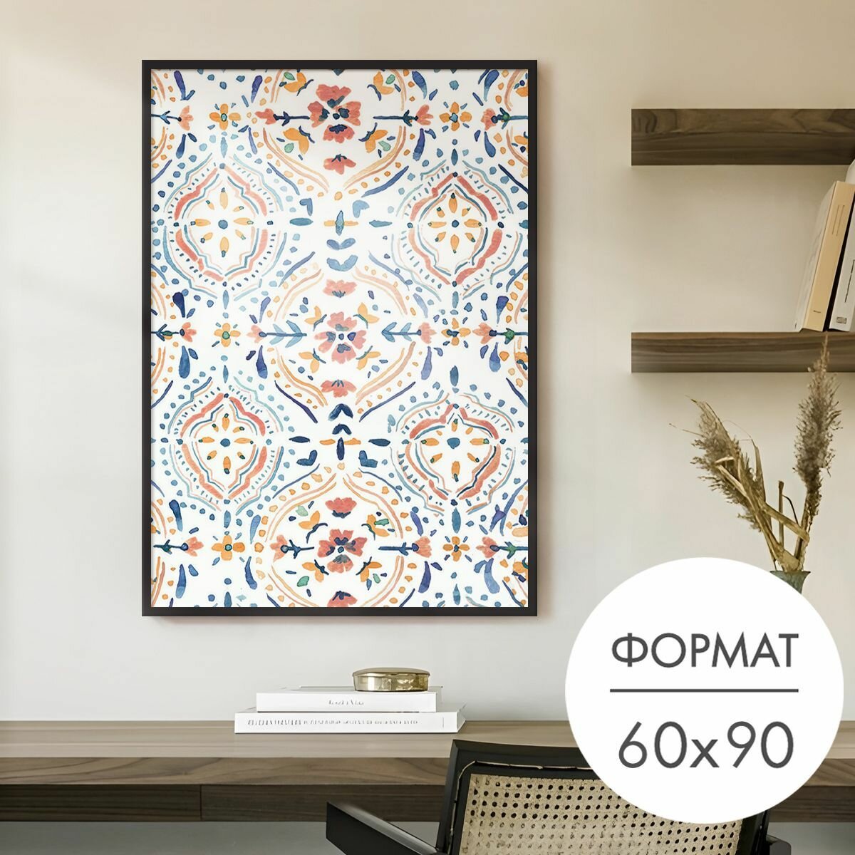 Отзывы на Постер "Цветочный геометрический узор" 60x90 без рамки на стену для интерьера