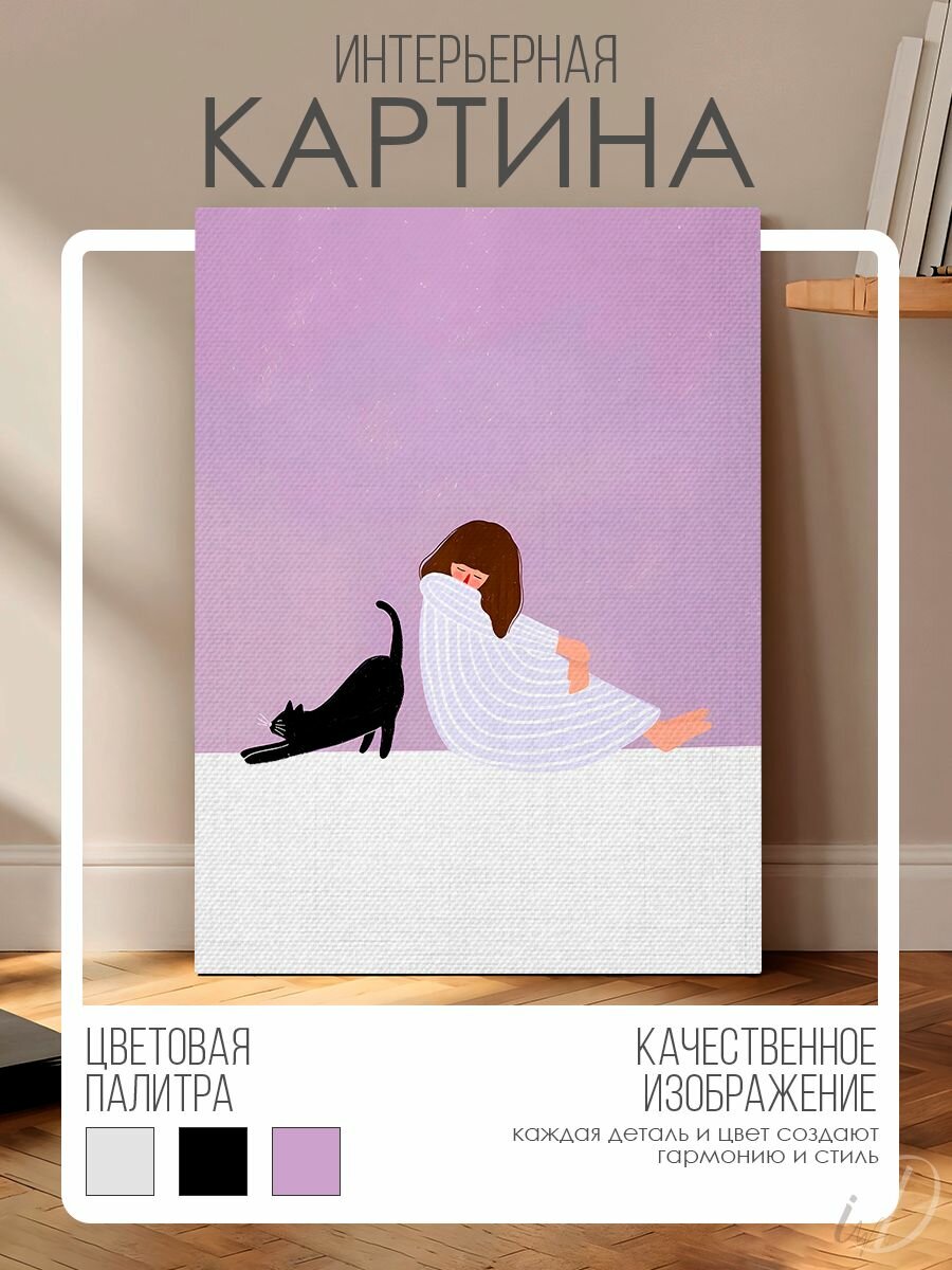 Картина на стену для интерьера девушка с котом сканди 60х80 см информация: